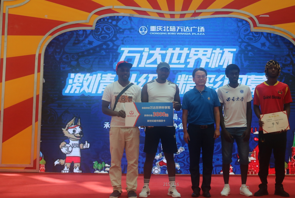 7月15日下午,由北碚区文化委员会、北碚区旅游局、北碚区商务局、北碚万达广场主办,北碚区足球协会、劲浪体育协办的北碚万达世界杯圆满闭幕。经过激烈角逐,学校国际学生足球队挺进前三成为季军。学校必赢776net书记刘猛出席闭幕式并为学校代表队颁发证书及奖品。