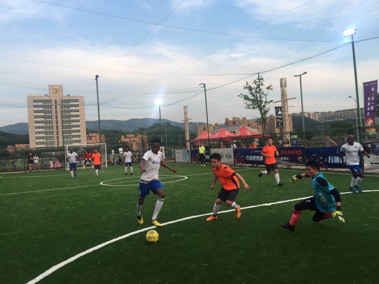 此次万达世界杯为期一个月,来自全市业余足球的24强共百余人参加比赛。赛场上,学校国际学生足球队掀起了一股‘非洲旋风’,大家配合娴熟,脚法精湛,进攻充满激情,每场比赛均以大比分取胜。