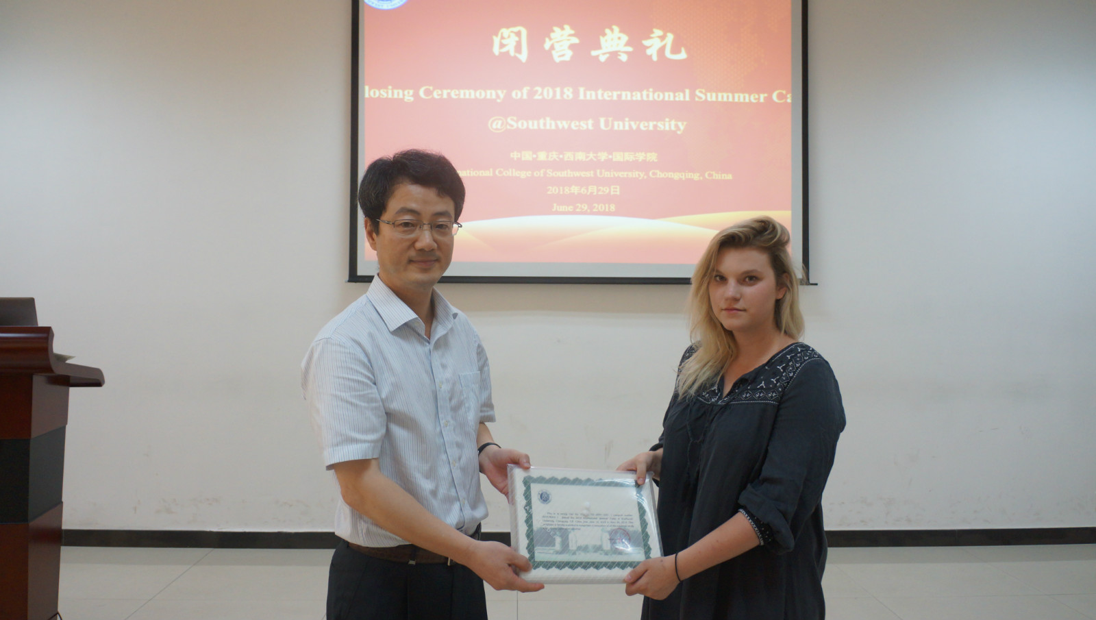 李院长在总结发言中表示,两周的时间虽然短暂,但是国际友人之间建立了深厚友谊,他希望此次夏令营能作为大家感知中国的重要开端。他说,大家的总结展示非常真实、生动、感人,每一组、每一个同学都充分展示了两周以来的丰厚收获。希望大家在未来更多关注我校、宣传我校,使国际学生夏令营越办越好。