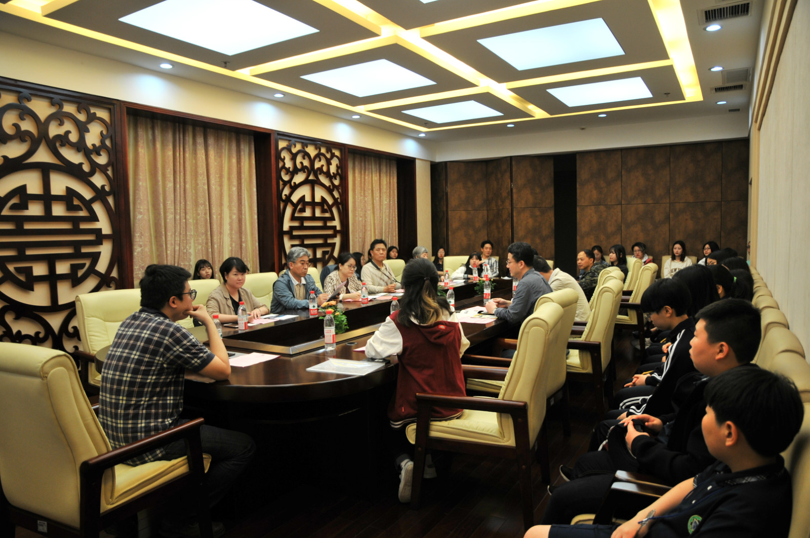 随后,两校师生分为不同小组讨论,就大学生活,学习等各方面亲切交流。