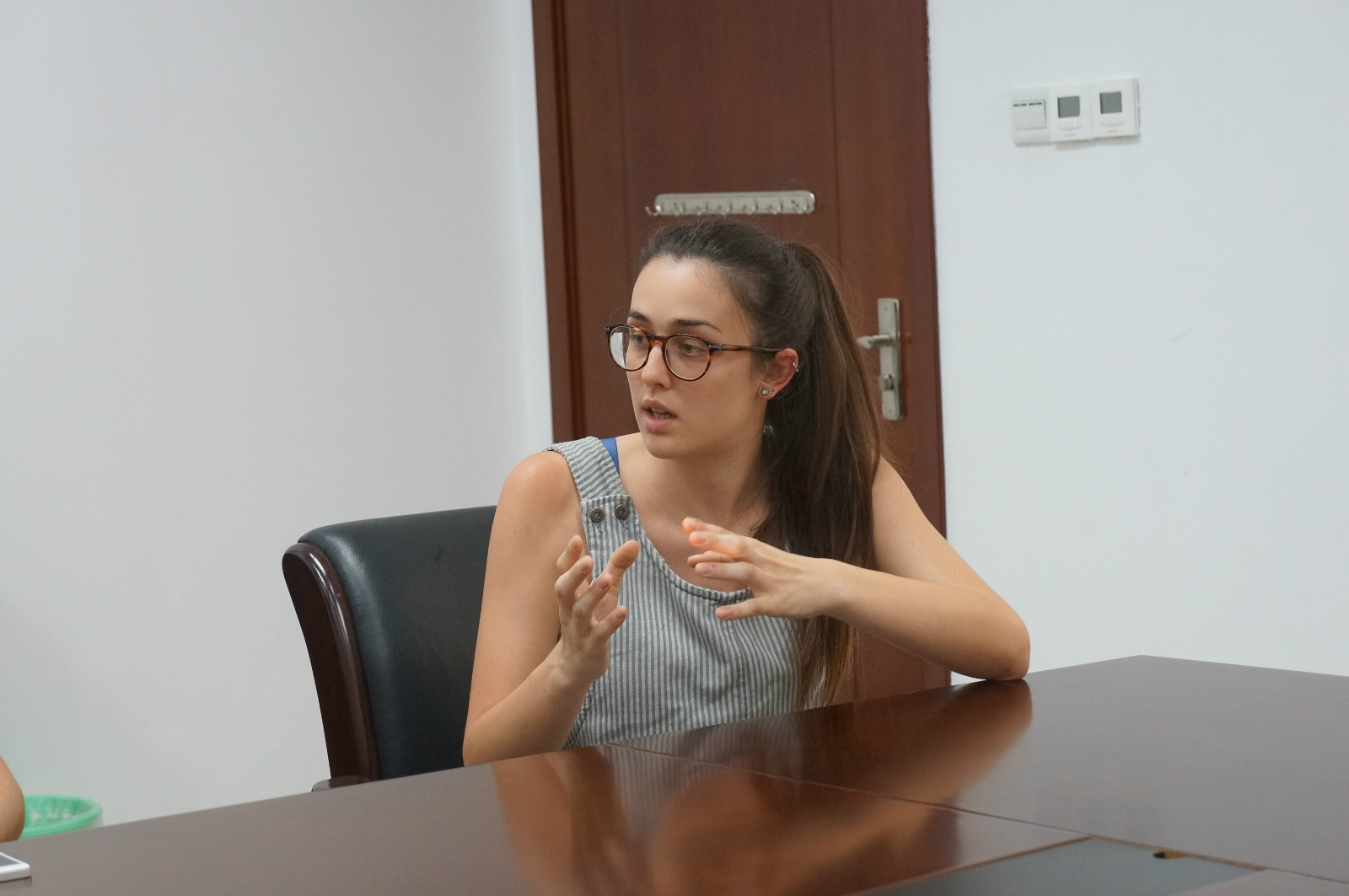 会议首先听取了来自意大利的苏榕、裴爱丽、茱莉以及来自捷克的童佳丽四位同学的发言。她们代表全班同学表示,非常感谢必赢776net提供这次宝贵的学习机会,让她们有幸来到中国,感受中国文化的独特魅力。她们还表示,在学校的学习和生活非常愉快,得到了老师们的悉心指导,感受到了学院对大家的关注和照顾。