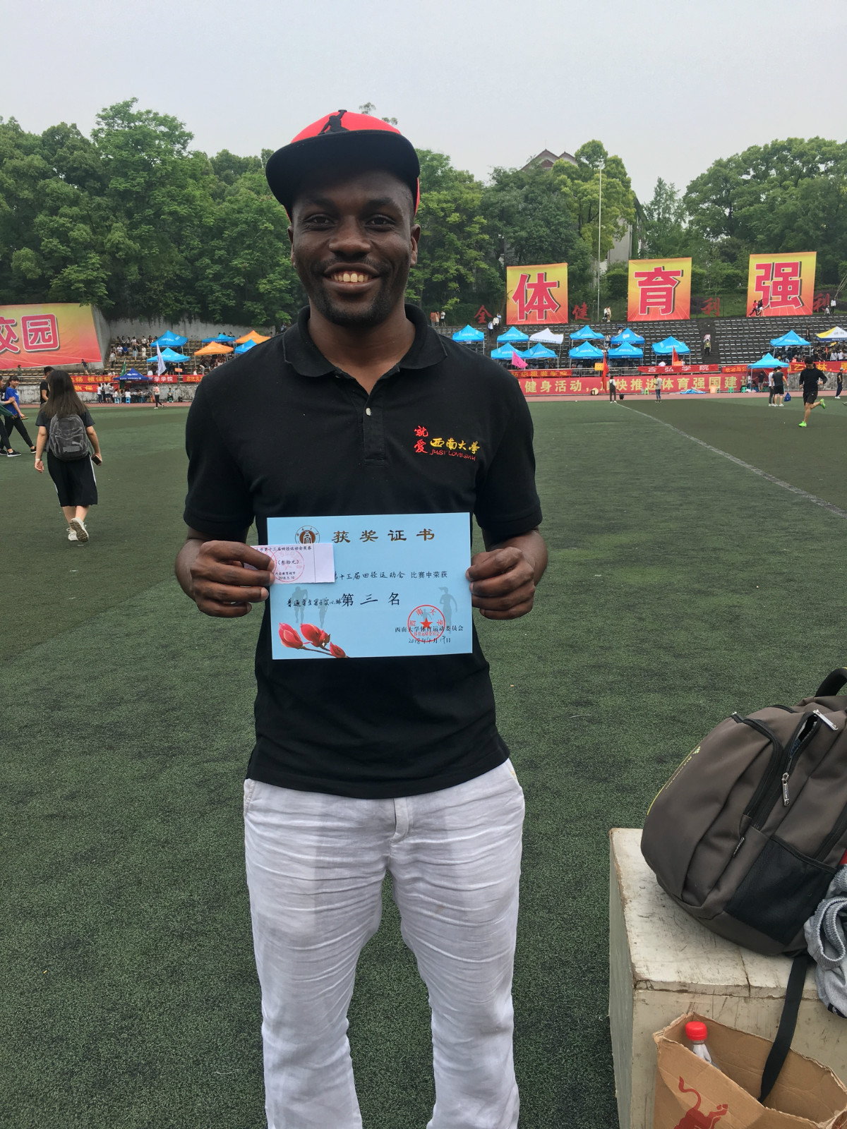 在第一天的比赛中,来自坦桑尼亚的阿普度在男子实心球比赛中一举夺得第三名的佳绩,赢来开门红。紧接着,第二天,我院教职工邹育艳老师在跳高项目中保持了良好的比赛记录,勇夺第六名。李林泽老师在男子100米中也收获第六名的好成绩。李航副院长在垒球项目中喜获第三名,为学院赢得荣誉,划上圆满的句号。