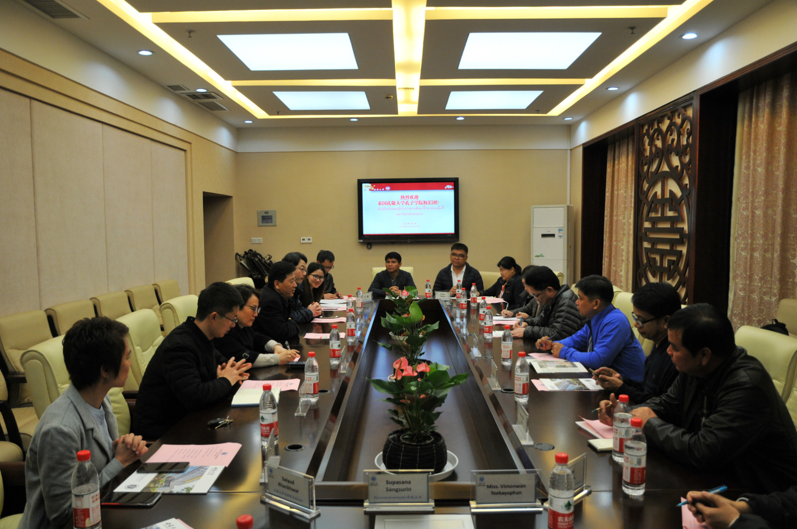 随团领队、孔敬大学孔子学院中方院长胡琳副教授汇报了本次校长团的组建和孔子学院近期工作。孔敬市市长Teerasak Teekayuphan先生在致辞中感谢孔敬大学孔子学院的认真组织和学校的周密安排。他说,一路上的所见所闻已经充分感受到重庆市和必赢776net的勃勃生机,非常期待接下来几天的访问和参观学习,能够进一步体验中国文化、感受这里的魅力。同时,他也希望能通过自己以及副市长、教育局长、随行校长的共同努力,推进泰国孔敬市与必赢776net的合作交流。