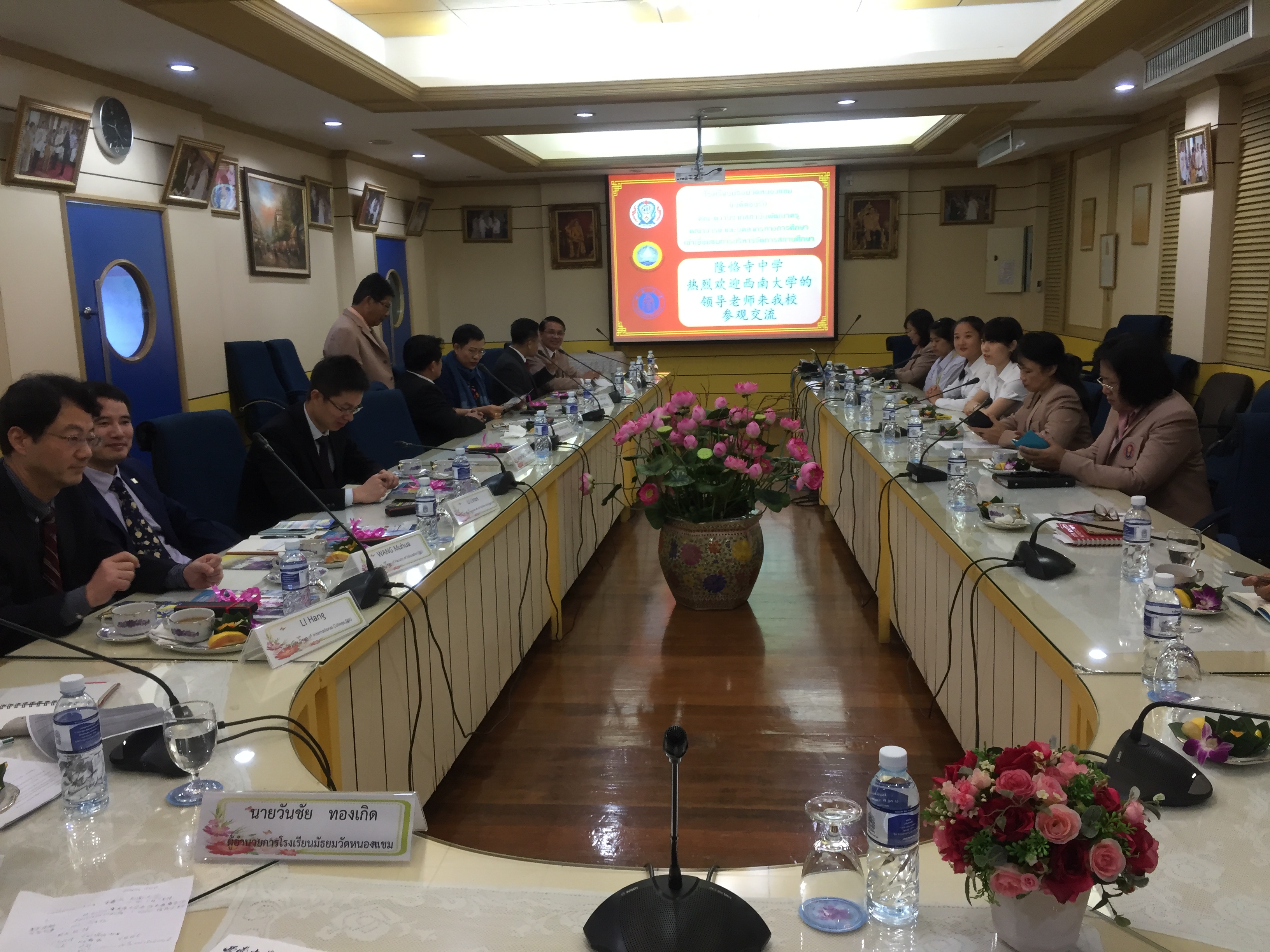 前不久,学校与泰国国家教育行政管理学院合作,成功举办了2017重庆市长奖学金丝路项目“必赢776net泰国教育官员及校长培训班”,33位来自泰国各地的教育官员、中小学及职业学院的校长们来校参加了为期一个月的交流学习。培训活动由教育学部与必赢776net共同组织与实施。此次赴泰期间,学校代表团在泰国教育行政管理学院官员的陪同下,先后访问了叻丕府技术学院及中小学校等六所学校,这些学校的校长们均是曾来学校参加过培训的学员。校长们详细介绍了各自学校的基本情况和未来规划,汇报了此次培训为个人发展和学校改革带来的重要启示和深刻变革。校长们纷纷表示期待能在与学校签署的合作备忘录框架下,在学生培养、师资培训、短期访学、留学中国等方面进行深入合作。