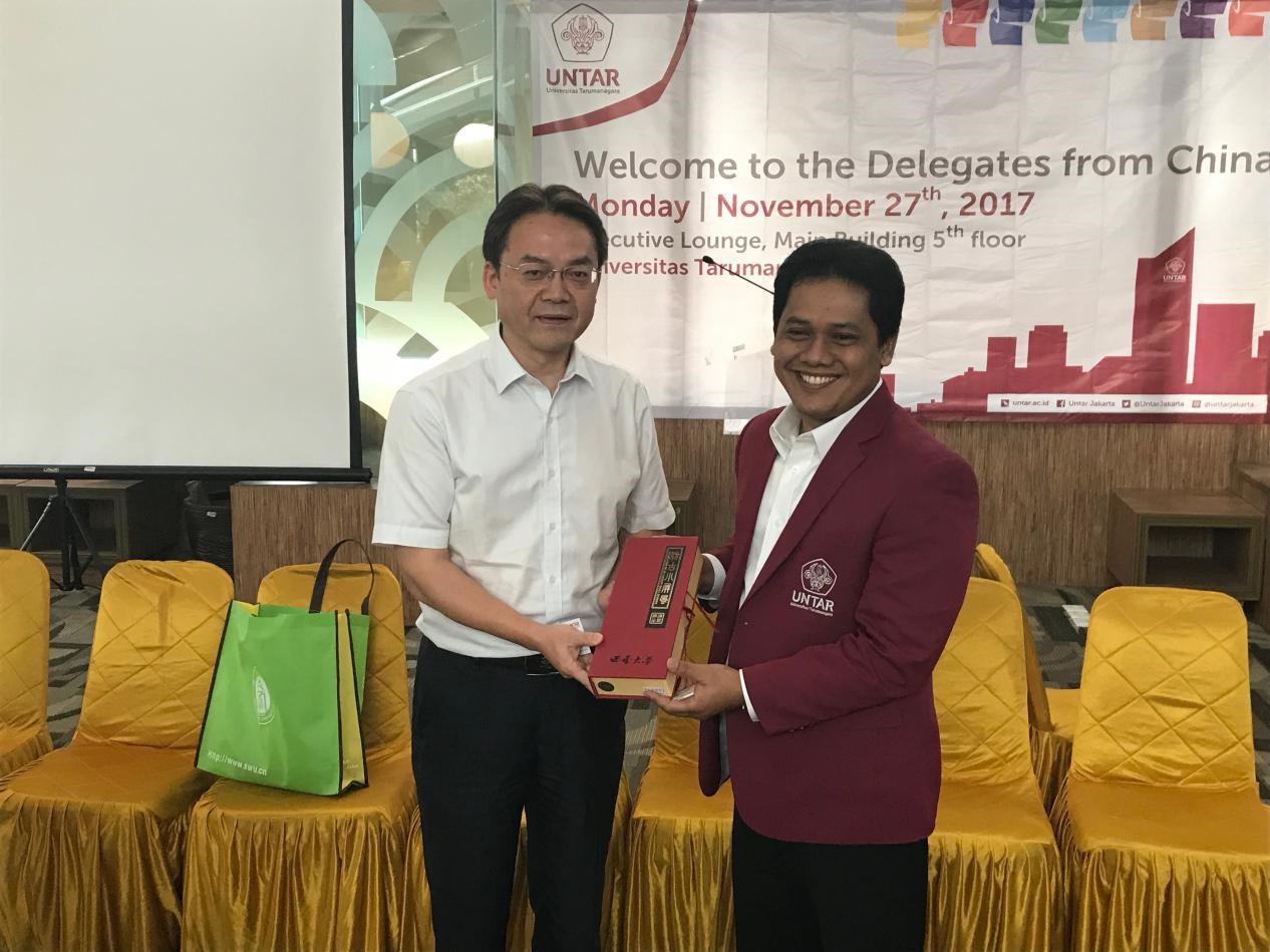 11月27日,代表团访问位于雅加达的印度尼西亚塔努玛那格拉大学,该校是雅加达发展最迅速的大学之一,刚获得了印尼教育部A级认证,学校在理工及经管类专业拥有非常显著的优势,也和中国40余所高校保持良好的合作关系。访问过程中双方就教育发展和合作意向进行了深入交流。