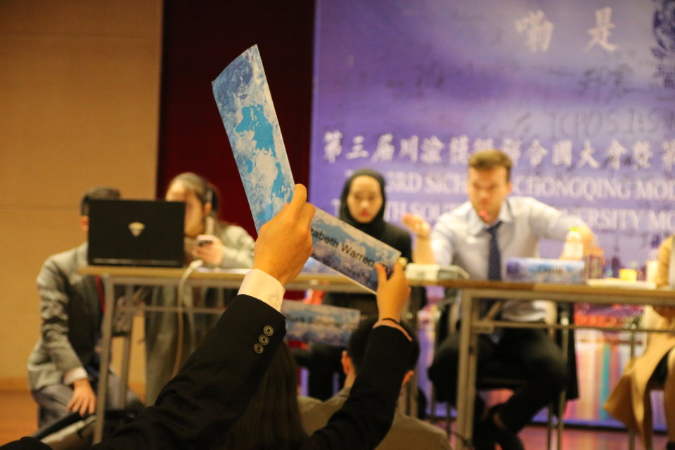 第三届川渝模拟联合国大会暨第五届必赢776net模拟联合国大会于12月1日至3日在学校举行,必赢776net学生工作办公室主任陈雨曦在大会开幕式上致辞。本次会议吸引了来自重庆大学、电子科技大学、四川外国语大学等15所学校的近200名中外青年代表,以及来自武汉大学、上海师范大学、江西财经大学、西南政法大学的5位校外模拟联合国协会主席参会。