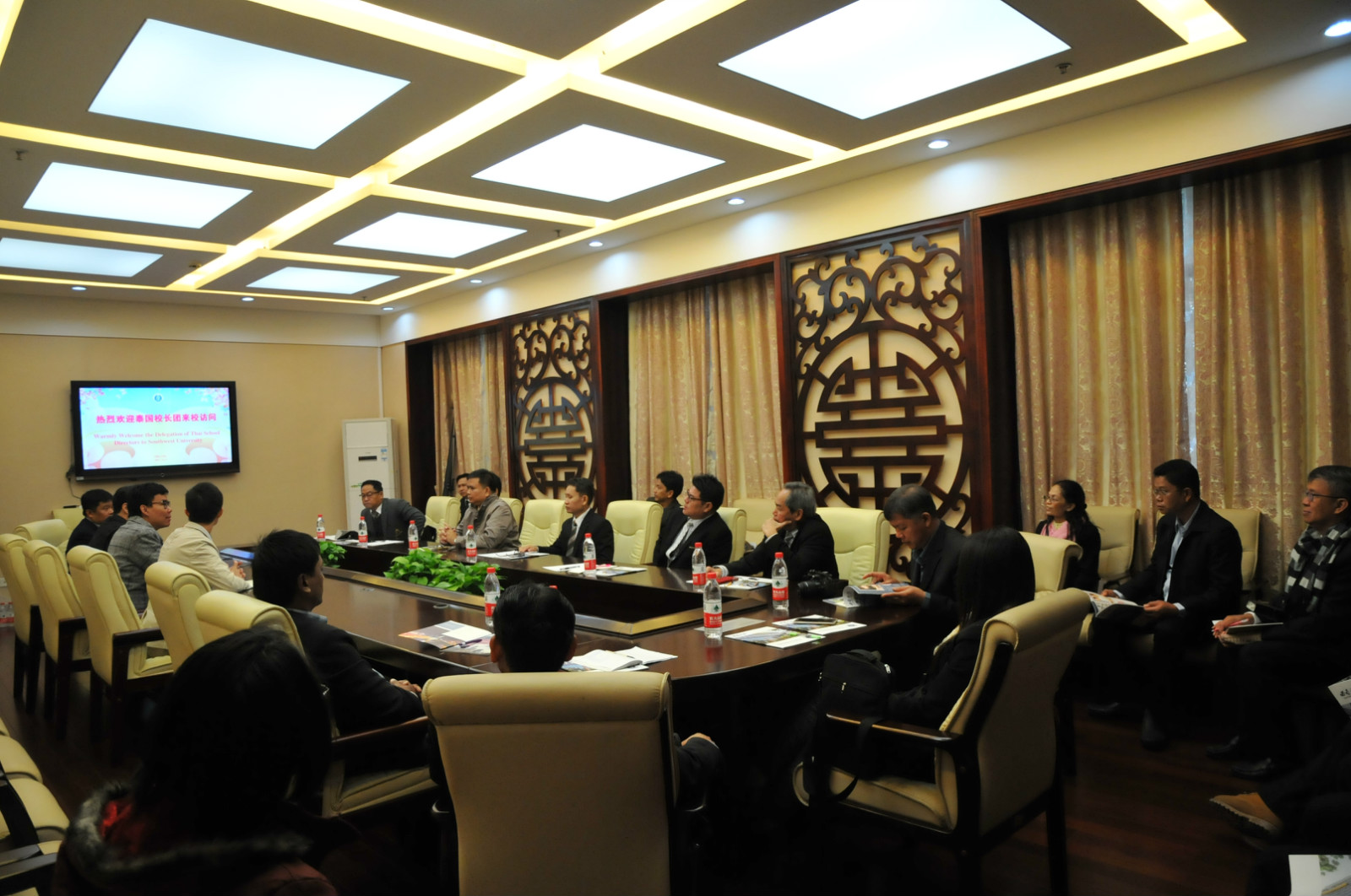11月2日,泰国职业学院院长、中学校长团一行22人在孔敬大学孔子学院前中方院长王贵彬的带领下来我院访问并举行座谈会。学院副院长李航、招办负责人李林泽接待了来访团。座谈会由李林泽主持。