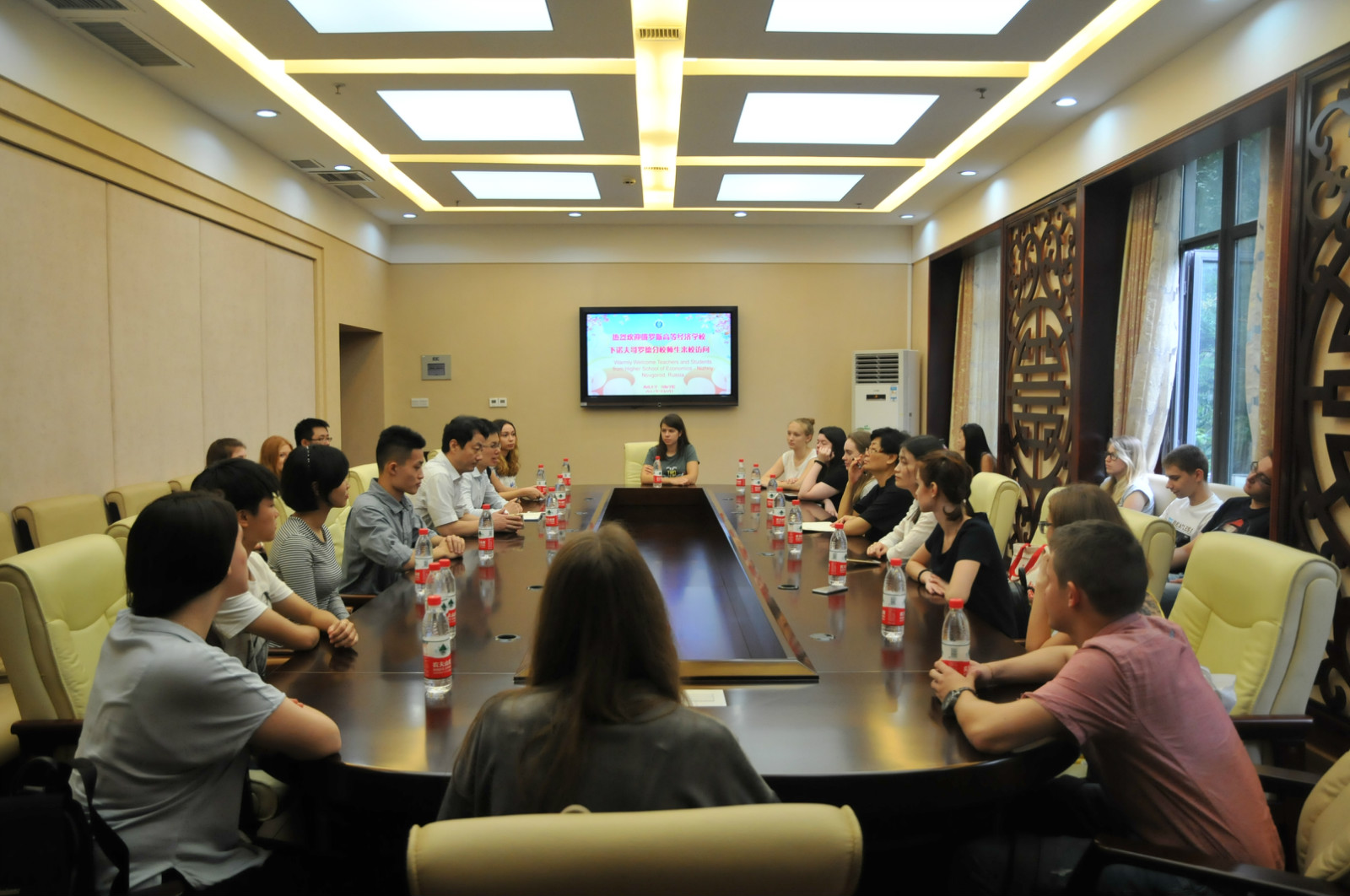 秦洁院长感谢学院的热情接待和周密安排。她说,此类访问在加强两校合作方面作用明显,有利于促进多元交流和多元文化融合。也希望通过座谈的方式,促进中外学生之间的了解。李航副院长向客人赠送了礼品。随后,访问团一行与我校外国语学院俄语专业学生代表和学校国际学生代表就中国文化、大学生活等话题进行了座谈交流。