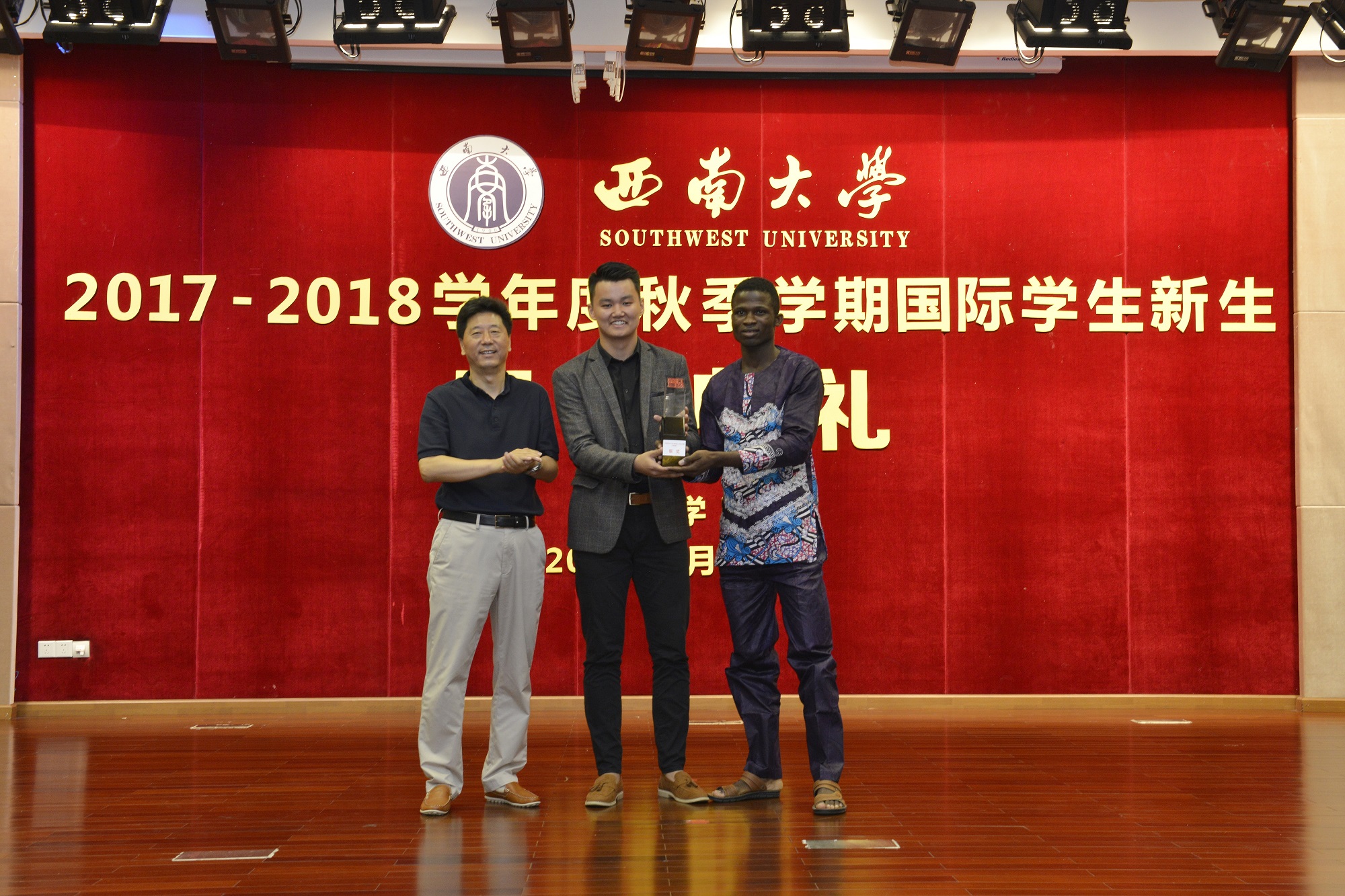 靳玉乐副校长还为2017“汉语桥全球外国人汉语大会”团体赛银奖获奖选手颁发了奖杯,到场嘉宾为中国政府奖学金、孔子学院奖学金和重庆市长奖学金获奖同学代表颁发了证书。