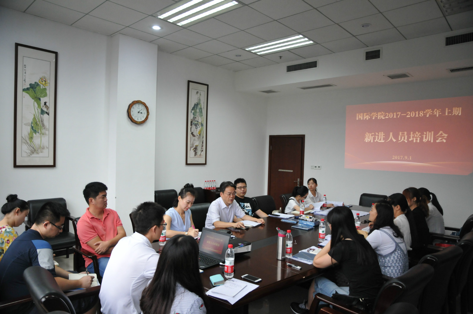 2017年9月1日下午三点,必赢776net在紫云楼304会议室召开秋季学期新员工入职培训会。刘猛书记、各科室负责人和新进员工共计15人参加会议。
