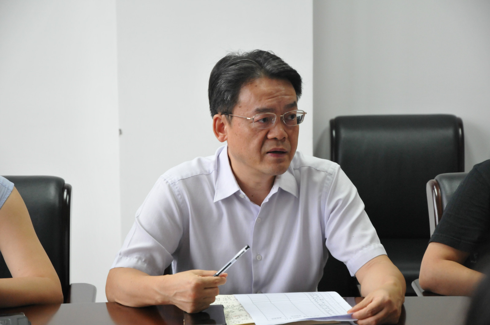 四位科室负责人对相关工作进行讲解和答疑。李林泽用找米下锅比喻招生办公室工作性质。强调做招生就是做市场,招办工作人员应具备四种意识:服务意识、大局意识、宗旨意识和制度意识。