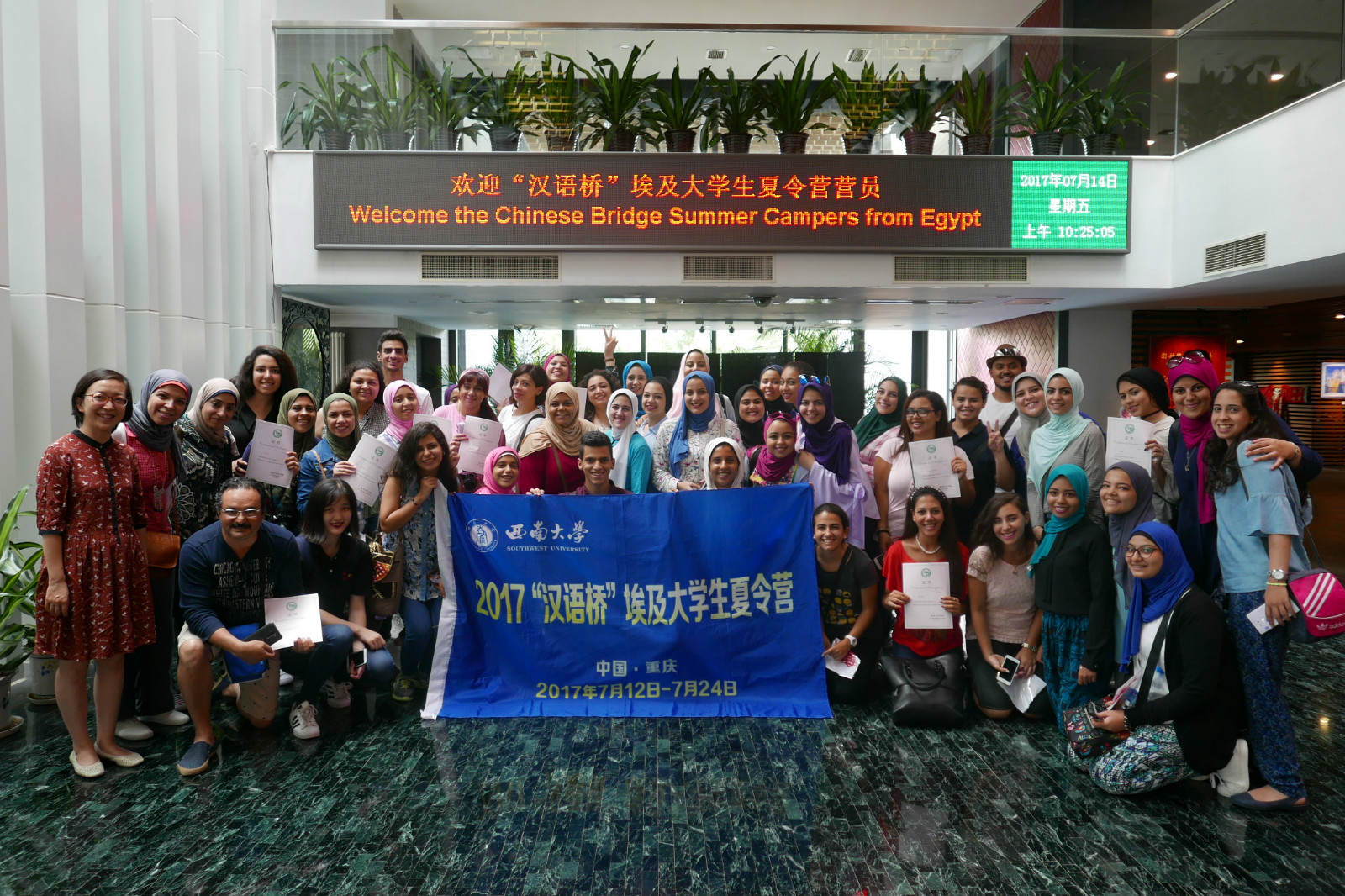 由国家汉办/孔子学院总部主办、学校必赢776net承办的2017“汉语桥”埃及大学生夏令营于2017年7月12日开始,7月24日圆满结束,来自二所埃及著名大学——艾因夏姆斯大学和埃及高等国际语言翻译学院——的44名中文专业的师生参加了此次夏令营活动。