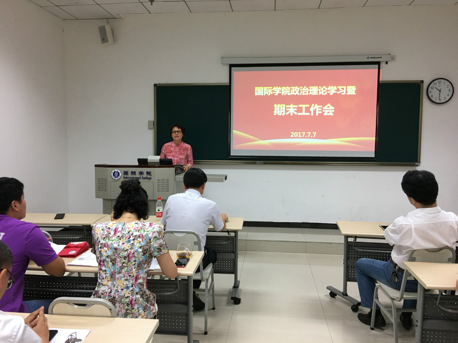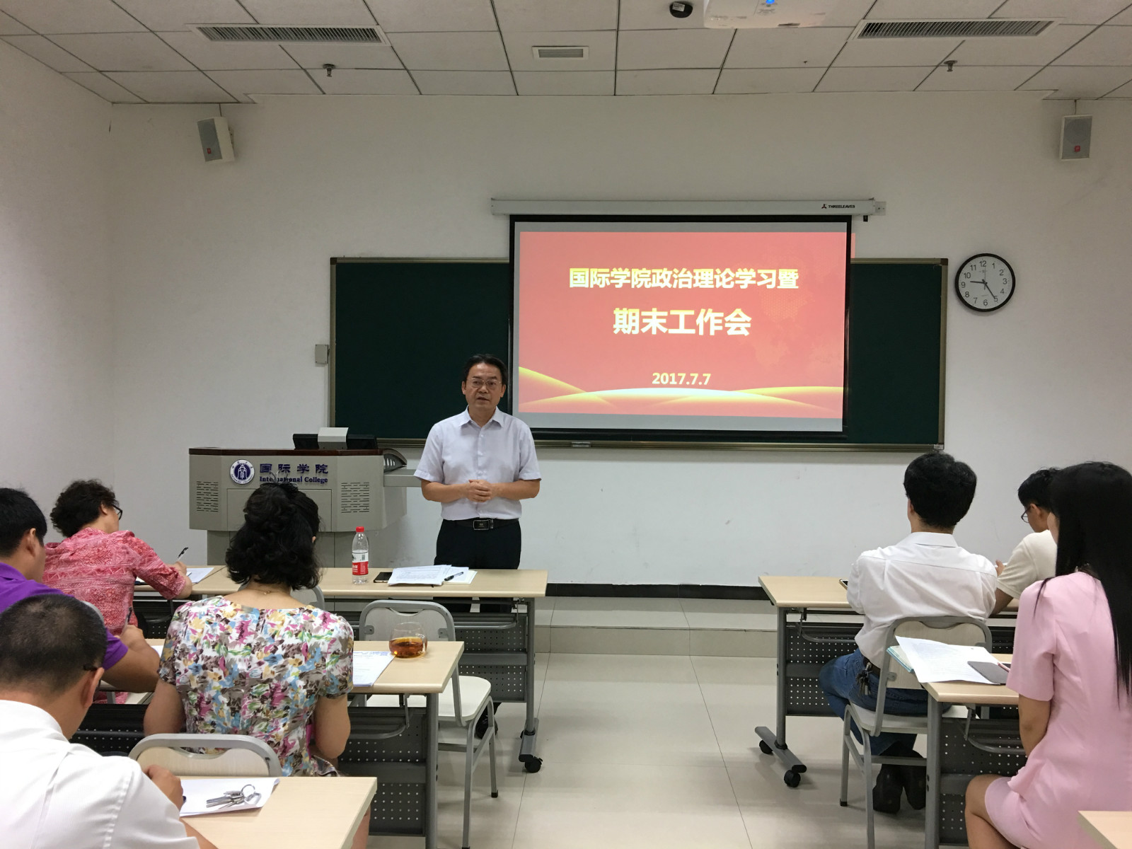 刘猛书记对假期各项工作的时间节点做了说明,对暑期工作做了布置,对安全稳定工作、值班要求等事项做了强调。李航副院长对招生和教学工作进行了补充说明。王静院长做总结发言,她对各部门的工作表示肯定,对学校绩效工资实施办法进行了通报,对下学年因工作或个人原因需要离开学院的同志表达了感谢和祝福。