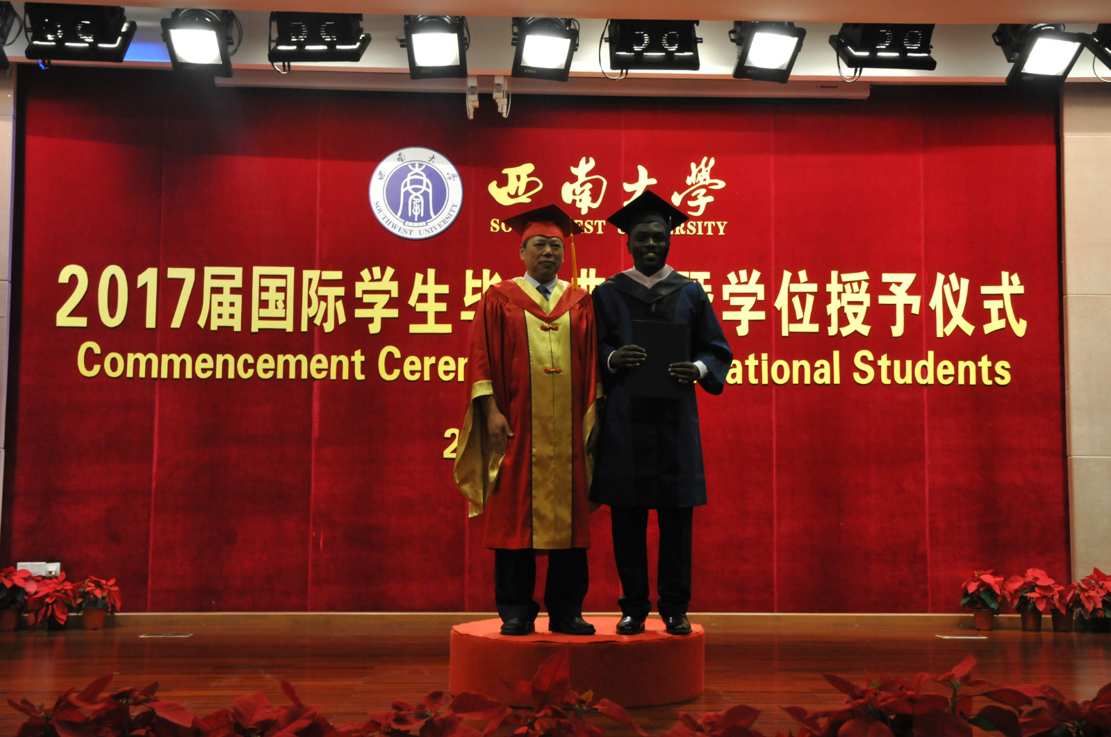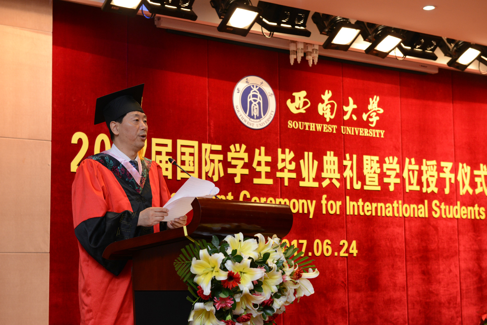 6月24日上午,学校举行了2017届国际学生毕业典礼暨学位授予仪式。校长、校学位评定委员会主席张卫国,副校长、校学位评定委员会副主席靳玉乐,相关学院及职能部门党政领导出席典礼。各学院教师代表、必赢776net全体教职工、各国留学生代表,2017届毕业生及其亲友共同参加了典礼。
