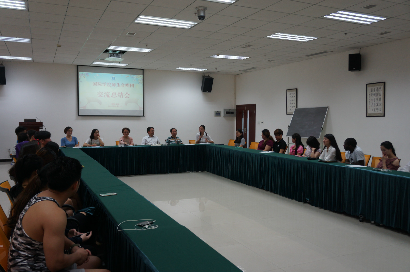 刘猛书记在最后表示,学院拟在2017-2018学年开设一门《中国民歌欣赏》选修课,师生合唱团将纳入学分制管理。届时欢迎对中国民族音乐感兴趣的留学生报名参加。