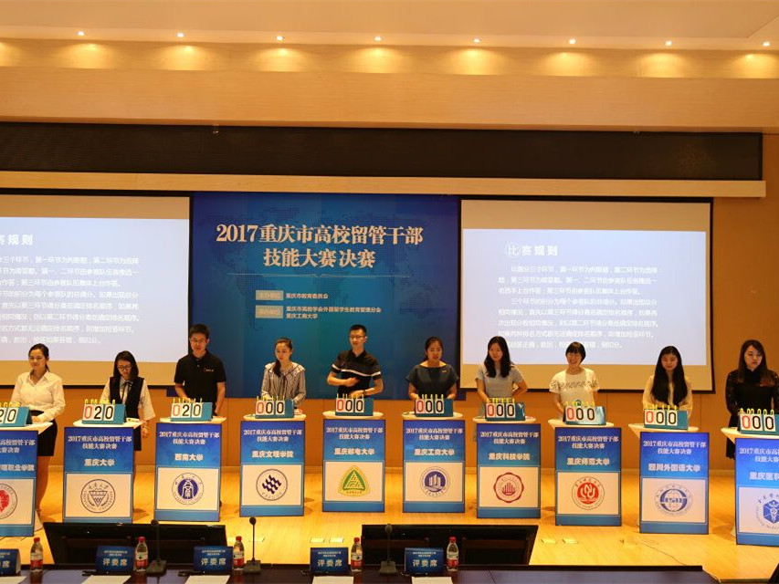 据介绍,重庆市高校留管干部技能大赛分为预赛和决赛两个环节,经过前期预赛,最终10支队伍进入决赛。由王鹊、李林泽、杨昆三名留管干部组成的我校代表队于今年三月参加了重庆市教委组织的留管干部技能培训和预赛,并以全市第二名的成绩进入决赛。