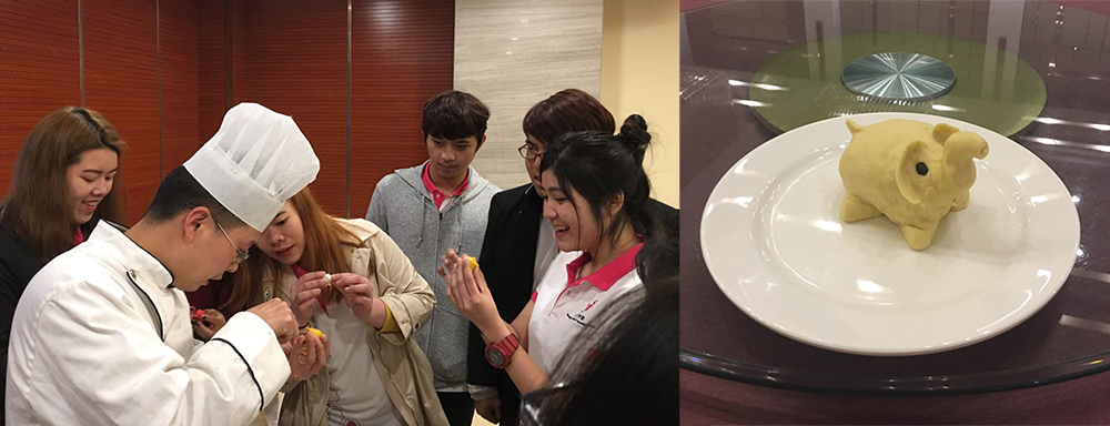 据介绍,这不是必赢776net第一次组织留学生到桂园宾馆进行实习,但此次由于计划更周详、安排更细致,较往年在培训内容和方式上更加新颖。除了解宾馆情况、熟悉行业规范、学习服务礼仪和礼节等传统内容,还开设了全新的课程——中国饮食及餐桌礼仪文化,并邀请餐厅两位高级厨师为留学生们进行知识讲解和技能演示。培训老师引经据典、深入浅出地介绍了博大精深的中国饮食文化,还用蔬菜、瓜果制作了栩栩如生的“蚱蜢”、“月季花”、“宝塔”等,看得留学生们热情高涨,个个摩拳擦掌。厨师们手把手分享了“小白兔”、“刺猬”、“玫瑰花”、“水仙花”的做法,与留学生合作做出了泰国的吉祥物——大象。