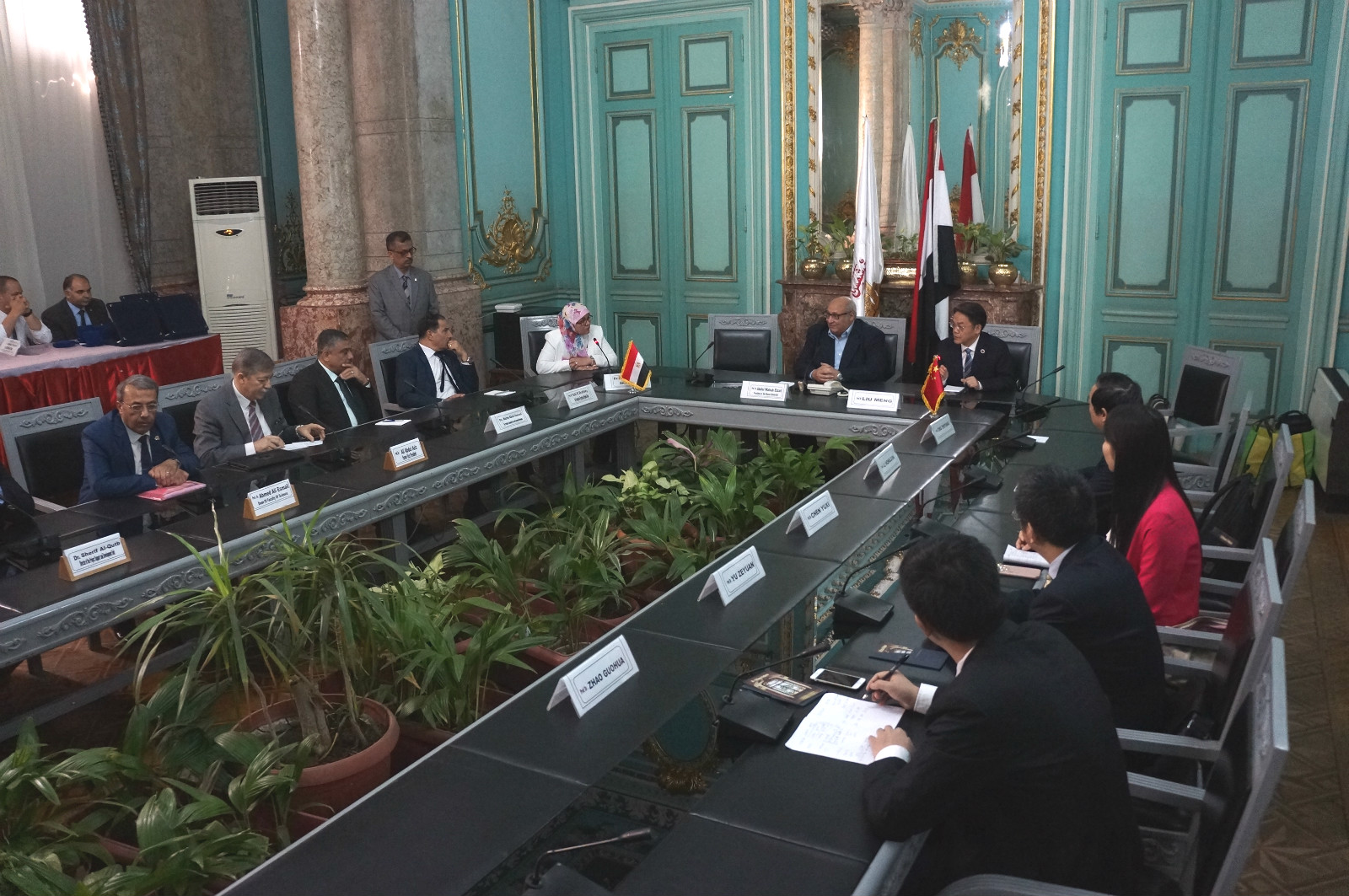 阿布德校长对代表团的来访表示热烈欢迎,介绍了学校的概况和特色优势专业,表示希望在学生联合培养、科学研究等相关领域展开合作,促进双方的深入交流。代表团团长刘猛书记感谢埃方的热情接待和精心安排,希望在MOU框架下,两校之间能有更多的具体合作协议落地生根,有更多的老师和学生实现交流互访。