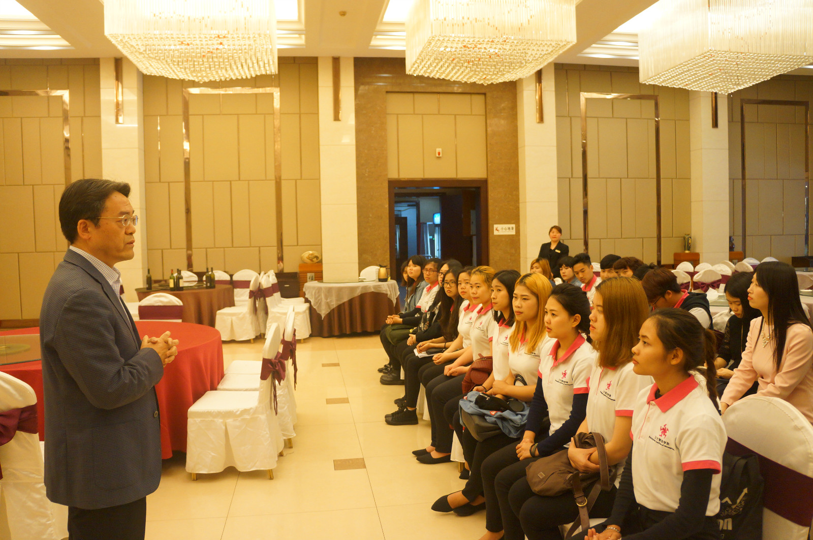 2017年4月13日下午,必赢776net党总支书记兼副院长刘猛一行在桂园宾馆部门负责人陪同下,来到桂园宾馆餐饮部看望慰问实习的20名第五届泰国正大管理学院"1+1+2"商务汉语项目班的同学。