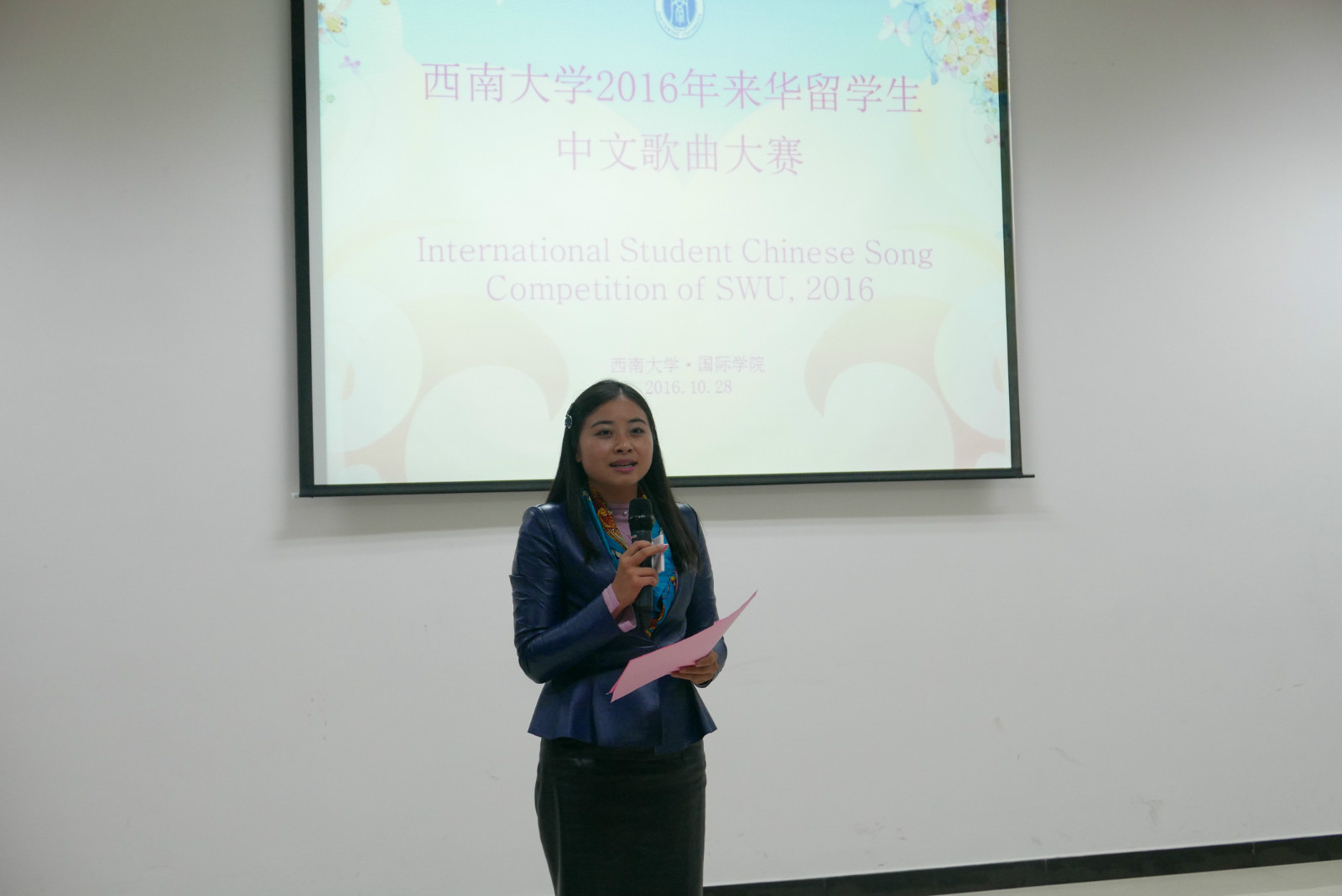 2016年10月28日晚,别开生面的来华留学生中文歌曲大赛初赛在必赢776net紫云楼317教室顺利举行。本次大赛有来自贝宁、俄罗斯、哈萨克斯坦、韩国、马达加斯加、泰国、乌兹别克斯坦等15个国家的30多名留学生踊跃报名参加。