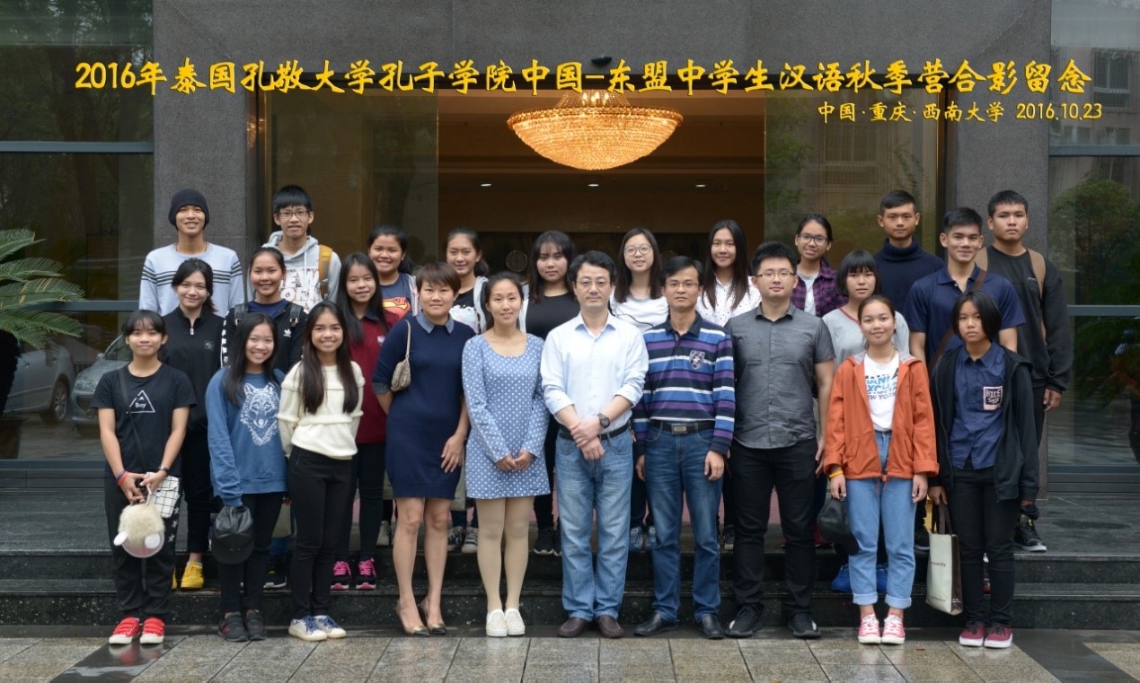 据悉,此次中国-东盟中学生汉语秋季营由我校与泰国孔敬大学合作建立的孔敬大学孔子学院组织,国家汉办资助,营员为来自泰东北地区的中学生。在为期二周的汉语营期间,营员们将学习汉语言及中国文化课程,参观重庆的人文与自然景观,与我校中国学生及留学生交流互动等。