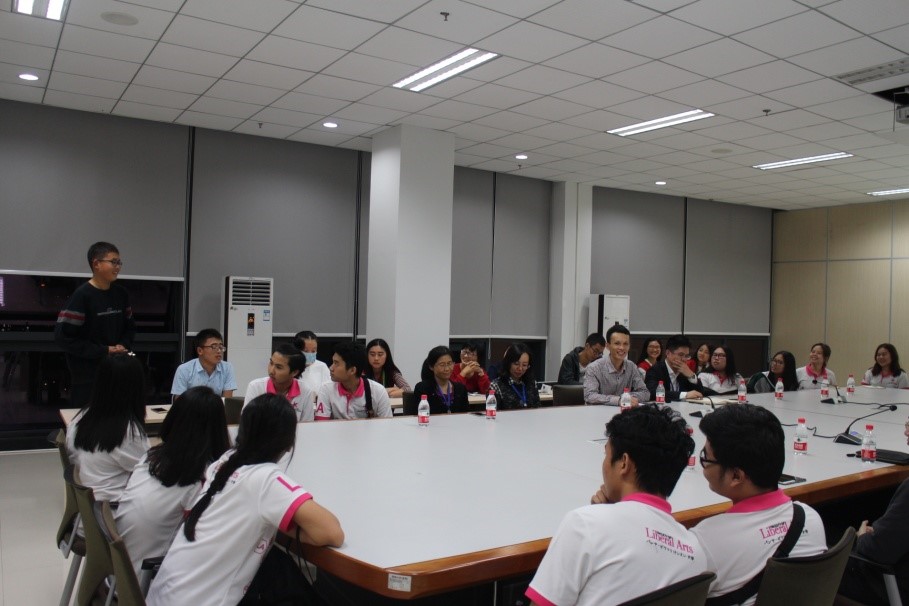 章雷副馆长致欢迎辞,热烈欢迎来自泰国正大管理学院的实习生。他详细地介绍了学校中心图书馆的基础设施建设、规模以及图书资源的分布格局,阐述了中心图书馆作为泰国同学实习基地的优势。为优化实习效果,本次实习实行小组负责制,泰国同学将与中国志愿者一起参与图书馆的服务工作。章馆长对同学们的日常行为规范做了简要说明,同时建议泰国同学在实习中能够少一点羞涩,多一点大方。