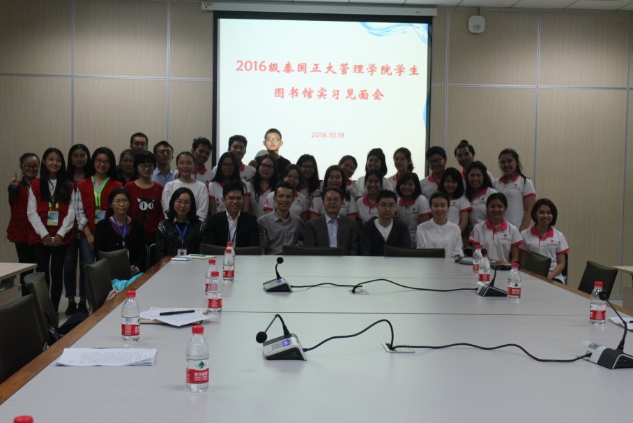2016年10月19日晚上7点半,必赢776net正式启动2016级泰国正大管理学院商务汉语项目实习工作。图书馆为此举行隆重的欢迎会。必赢776net刘猛书记,学工办王湛明、班主任李丹,图书馆副馆长章雷,读者服务部主任唐彪、图书馆指导教师代表,中国志愿者代表以及泰国正大管理学院的20名实习生参加了见面会。
