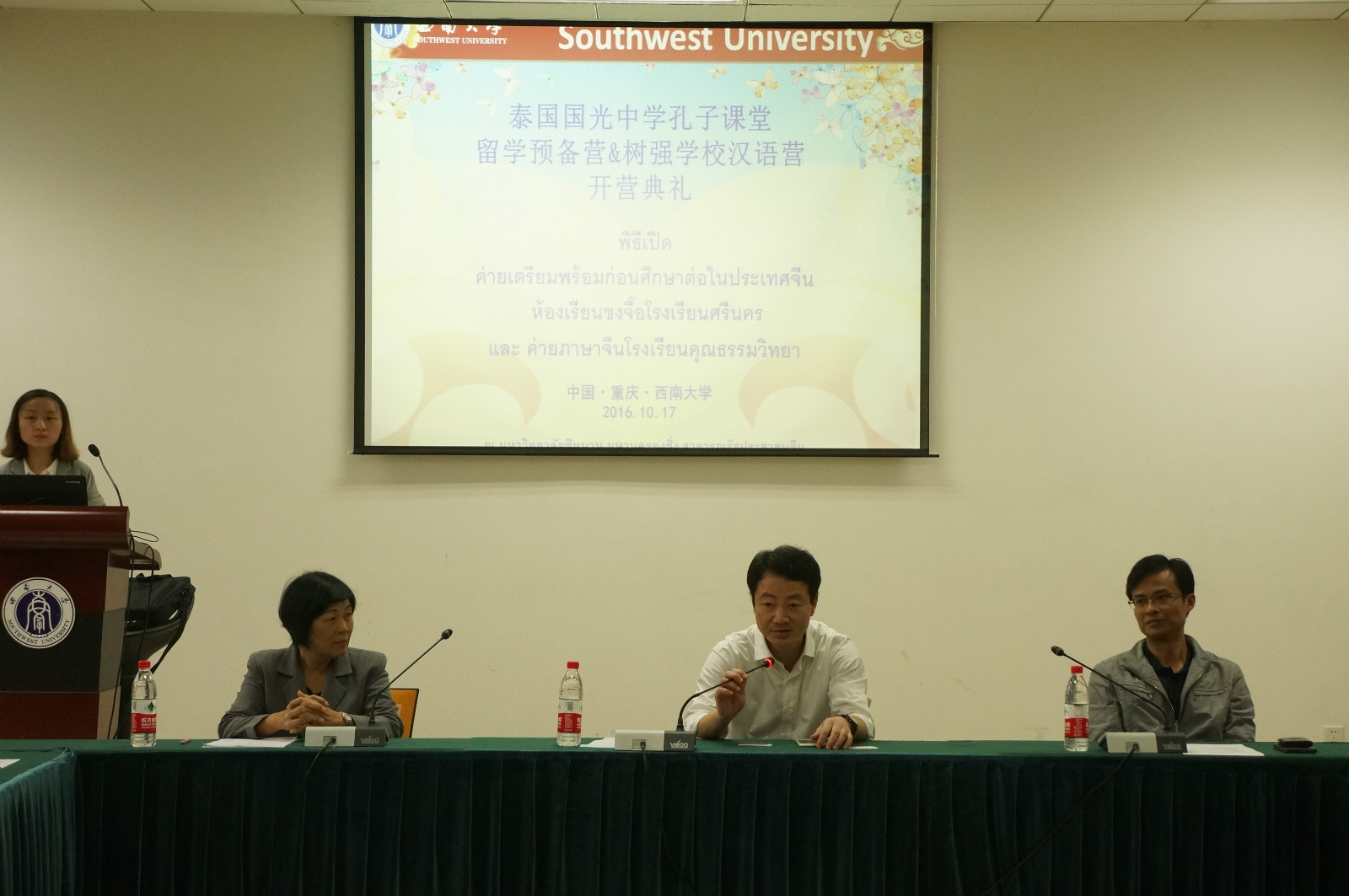 10月17日上午9点,泰国国光中学孔子课堂留学预备营暨树强学校汉语营开班典礼在我院紫云楼317教室顺利举行,来自泰国6所中学的36名中学生、6名领队教师、以及必赢776net副院长李航、招生办公室主任代远鸿、项目负责人张波、泰国学生志愿者等50余人参加了此次开班典礼。