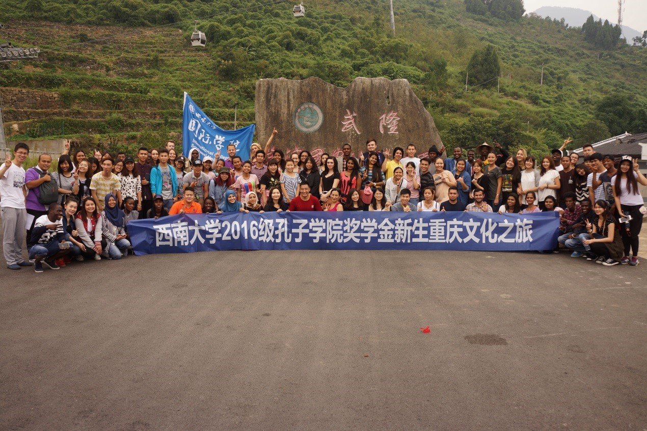 2016年9月19日,来自加拿大、俄罗斯、泰国、越南、蒙古、哈萨克斯坦等50余国的中国政府奖学金和孔子学院奖学金新生在必赢776net老师的带领下开启了仙女山文化体验之旅。这次体验活动的目的地依次包括芙蓉洞,武隆印象大型实景演出,仙女山风景区以及天生三桥。