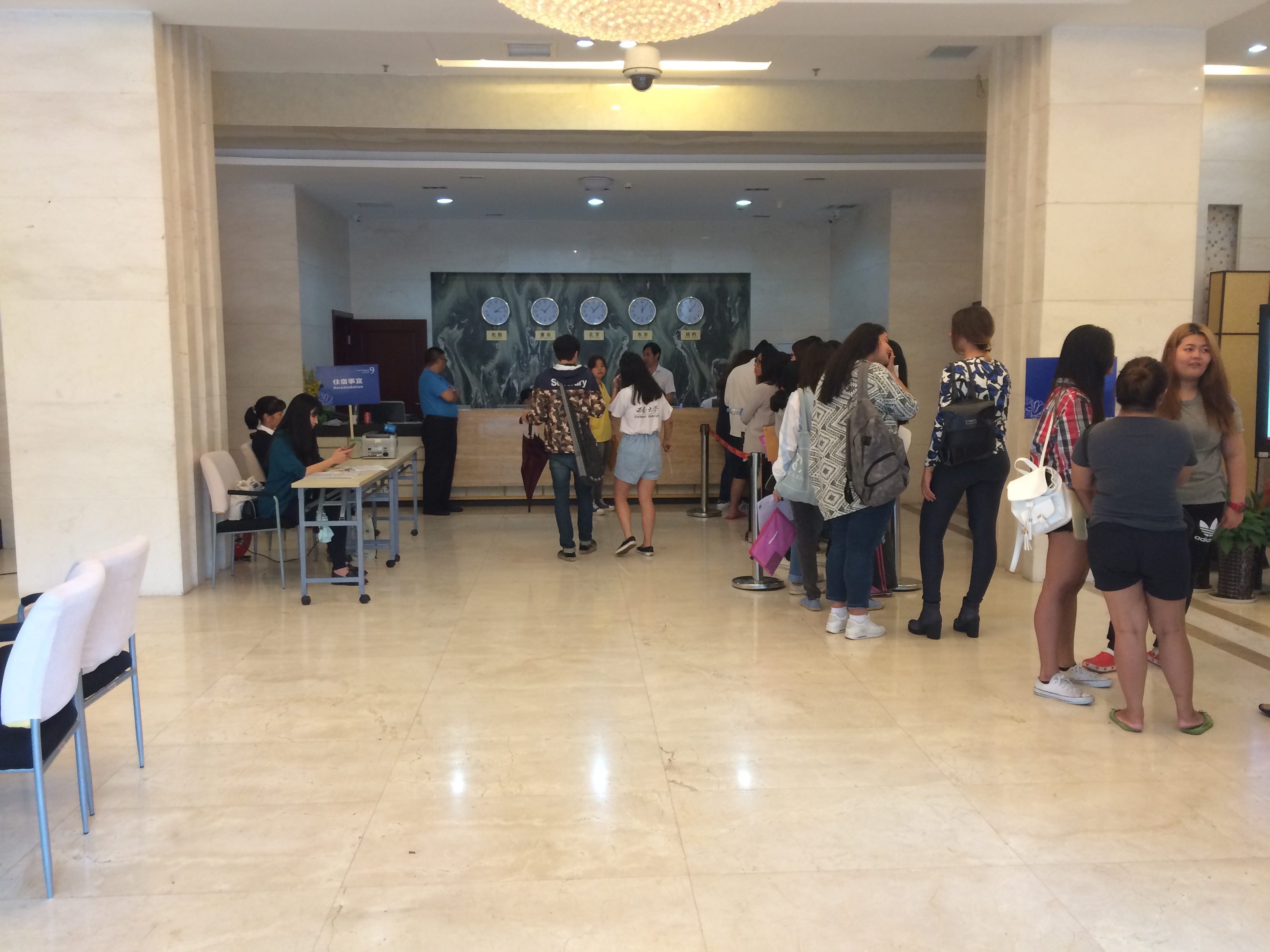二、优化场地和流程设置,提供人性化服务。为迎新工作顺利流畅,必赢776net早于七月上旬就开始规划各项事宜,对新生报到现场布置、报到流程设计、每个环节负责人安排等进行了精心策划,简化了报到流程,减轻了来华留学生报到的各种困难。