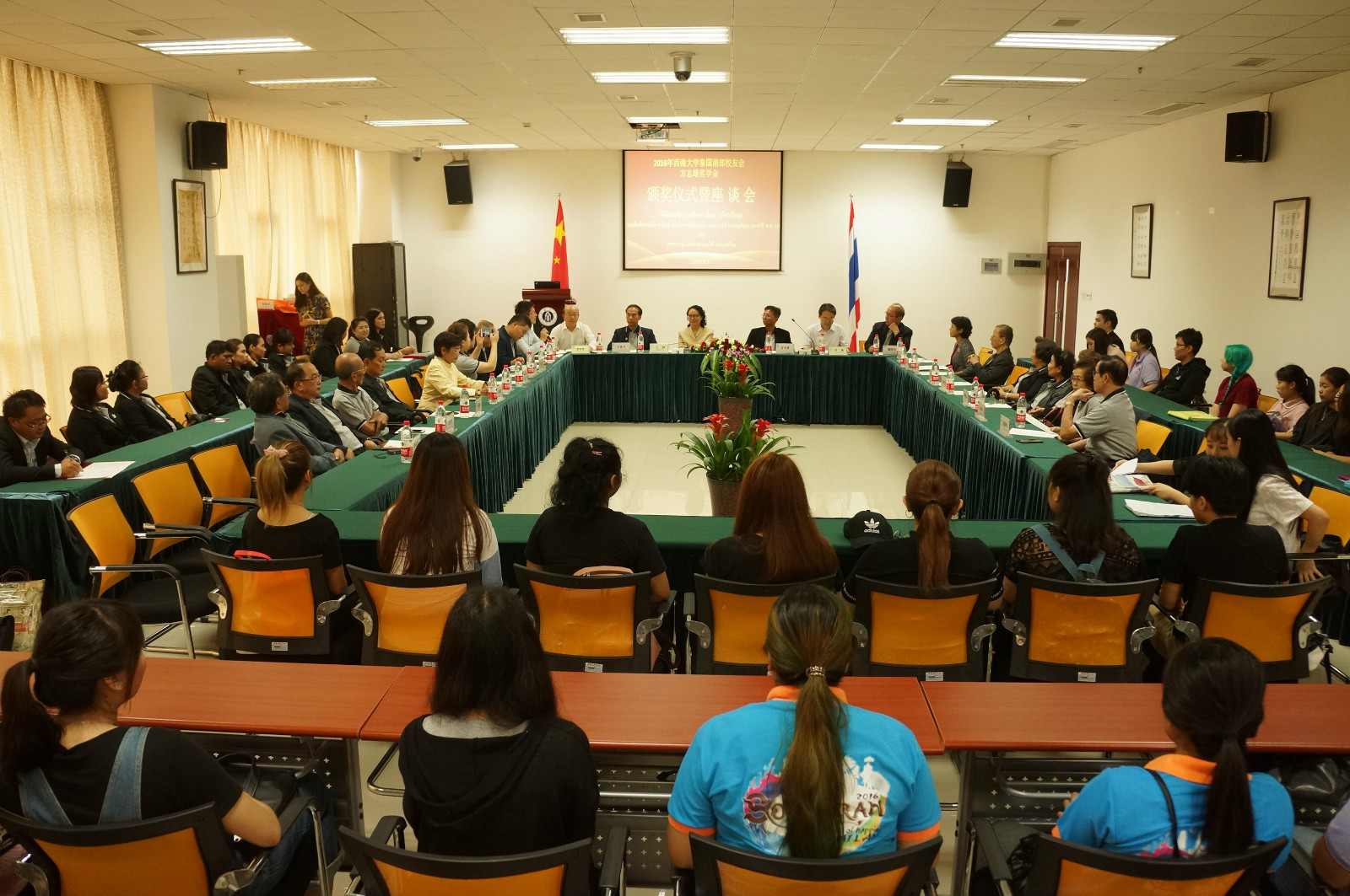 9日下午,必赢776net隆重举行考察团全体成员与泰南留学生座谈会暨“必赢776net泰国南部校友会方志雄奖学金”颁发仪式。