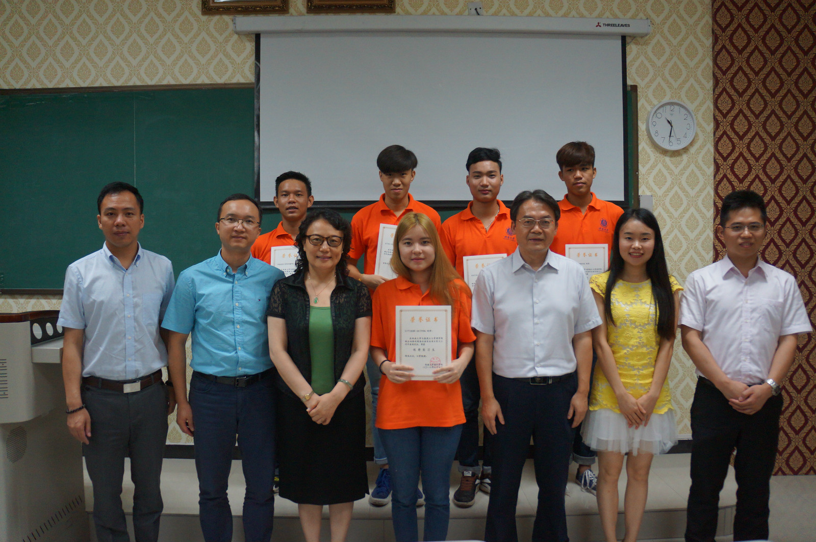 泰国同学们的实习表现得到了实习单位领导、指导老师的认可,根据实习考核及实习指导教师的反馈,最终评选出五名在实习中表现优秀的同学,分别是黄如玉、苏览浩、郑格翎、周景原、丹成功。到场领导为获奖同学颁奖并合影留念。