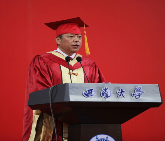 来自荷兰王国的张克雷同学作为留学生代表发言,他是历史文化学院中国近现代史专业招收的第一位外国来华留学的博士研究生,在学术研究方面有突出表现。不仅如此,他还十分可爱,发言时他的一句重庆话:“老师,啥子锅底?”引来全场笑声和掌声。最后,他提到了在西大求学感触最深的“老师文化”,并感谢母校和恩师,他表示自己已在西大求学,早已把这里当做自己的家,即将离别之际心中充满了不舍与感恩。