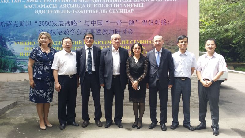 此次我们就与阿布莱汗国际关系与外语大学联合建立孔子学院与中国驻阿拉木图总领事馆相关领导进行了沟通,参加了我校在国际哈中语言学院建立汉语中心和汉语国际教育专业硕士教育实践基地的挂牌仪式,同时还参加了该校2016届学生的毕业典礼。