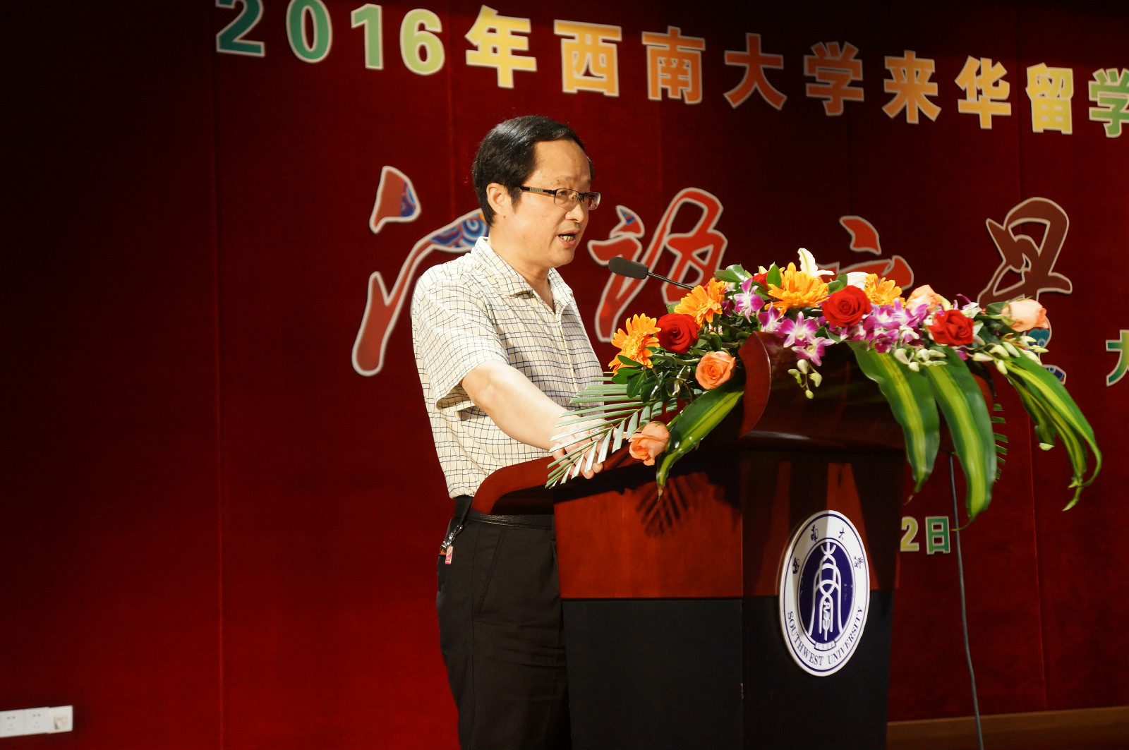 校长助理王为一发表致辞。他肯定了我校留学生教育的发展成果,并谈到,“汉语之星”大赛给留学生们提供了讲述留学生活,展现汉语风采的绝好机会,预祝各位选手在决赛中取得优异的成绩。