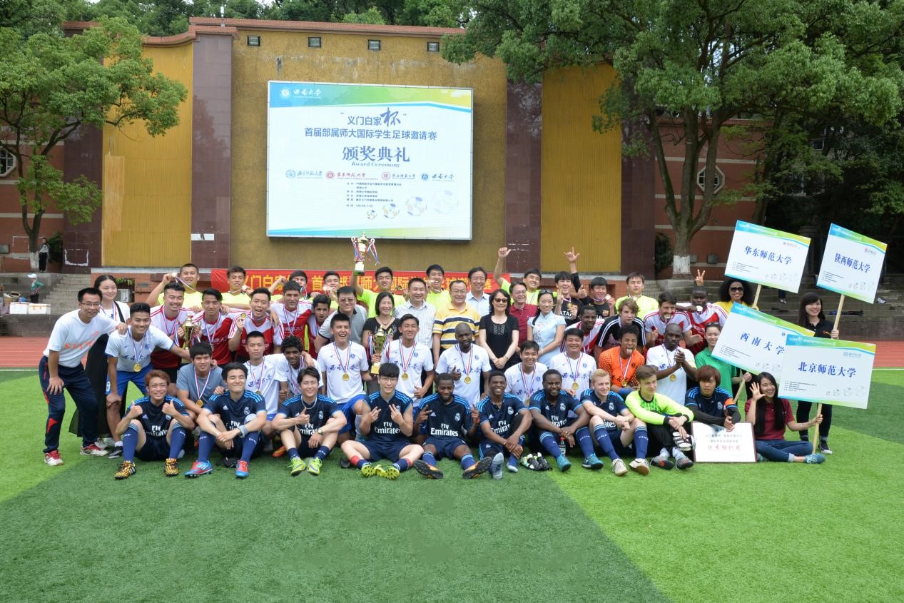 此次足球邀请赛旨在为部属师大国际学生提供一个相互沟通、增进交流、切磋技艺、共话友谊的平台,由中国高教学会外国留学生教育管理分会和我校主办,必赢776net承办,体育学院协办,得到重庆义门白家有限公司大力赞助。比赛期间,部属师大代表还就国际学生工作进行了座谈交流。赛后,全体参赛队员参加了联谊会。经商议,明年部属师大国际学生足球邀请赛将在华东师范大学举行,届时我校代表队将出征上海。