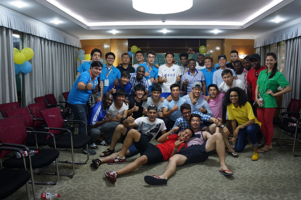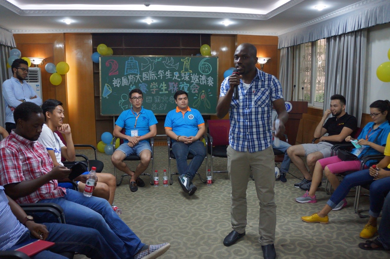 2016年5月21日下午2:30,“义门白家杯”首届部属师大国际学生足球邀请赛参赛学生联谊会在我校留学生公寓1-1会议室隆重举行,来自北京师范大学,华东师范大学,陕西师范大学以及我校参赛留学生参加活动,联谊会由我校留学生会承办。