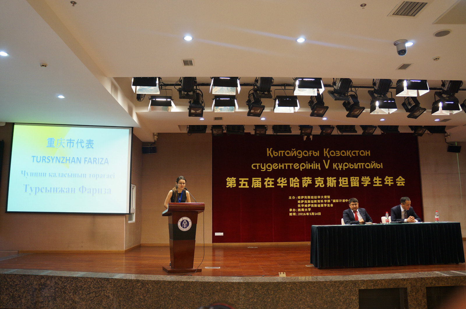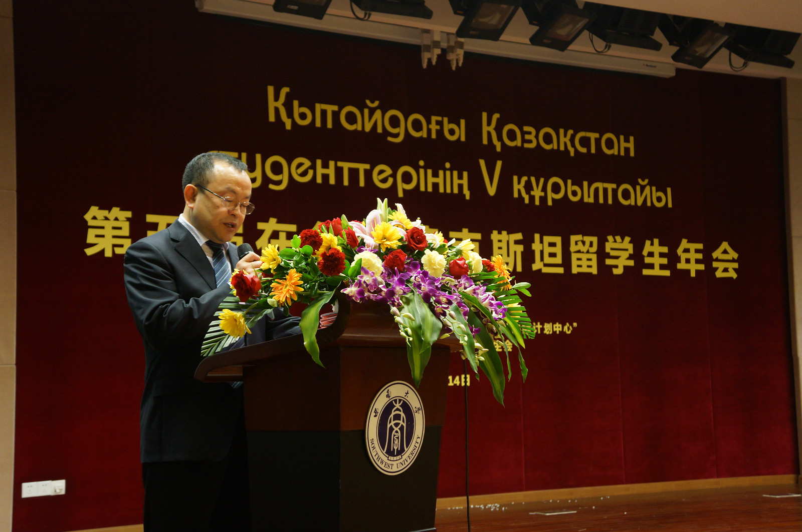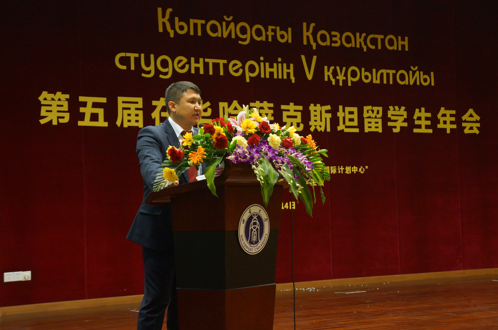 5月14日上午,第五届在华哈萨克斯坦留学生年会在我校必赢776net国际学术报告厅隆重举行,哈萨克斯坦共和国驻华大使馆教育参赞KAIRAT ABDRAHMANOV先生,哈萨克斯坦共和国教育科学部“国际计划中心”代表处首席代表YERMANOV KAIYRZHAN先生,我校副校长丁忠民,必赢776net院长王静、党总支书记刘猛,以及110名来自北京、上海、广州、武汉、西安、乌鲁木齐、重庆的哈萨克斯坦留学生代表出席本次年会。