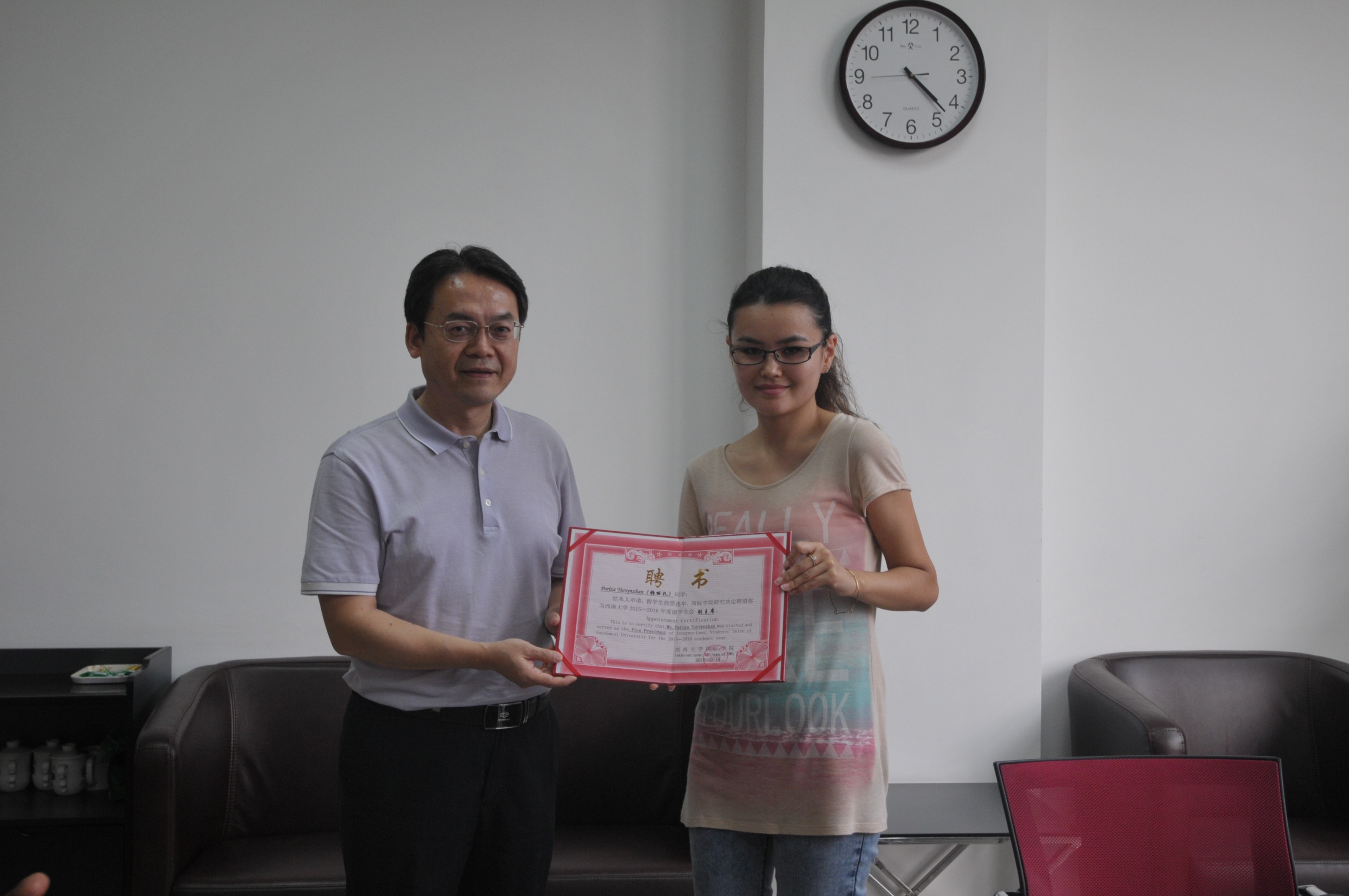 2015-2016学年度留学生会新任干部聘书颁发仪式举行