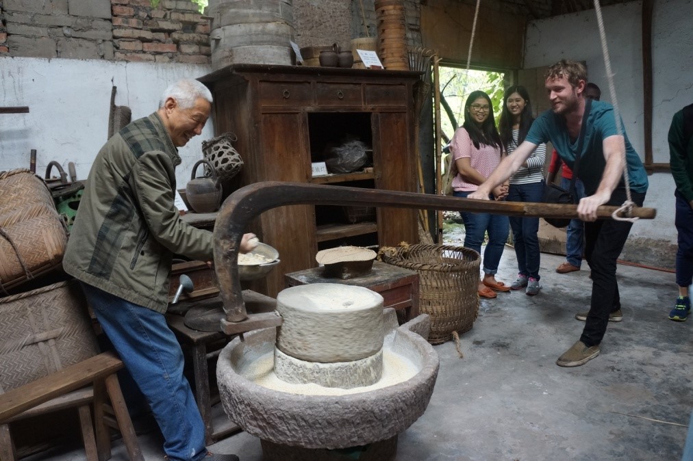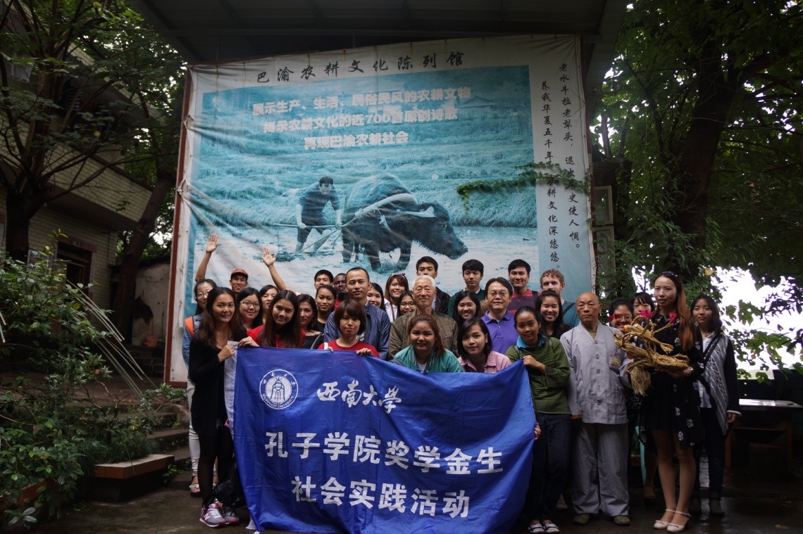9月27日上午,必赢776net启动汉语国际教育硕士留学生班社会实践活动,必赢776net刘猛书记和教师代表带着21名汉硕留学生饶有兴趣地参观了重庆**农耕文化陈列馆和蔡家岗新寨子,“老外”们对**古老的农耕文化赞叹不已。
