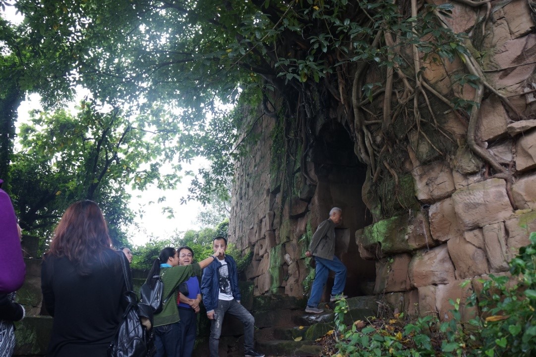 惜别农耕文化陈列馆,大家又来到北碚区重点文物保护单位——蔡家岗新寨子。这个有着一百多年历史的古寨子,是蔡家岗七座寨子中唯一完整保留下来的,极具历史文化价值,留学生们对古代中国村落的防御工事赞叹不已。