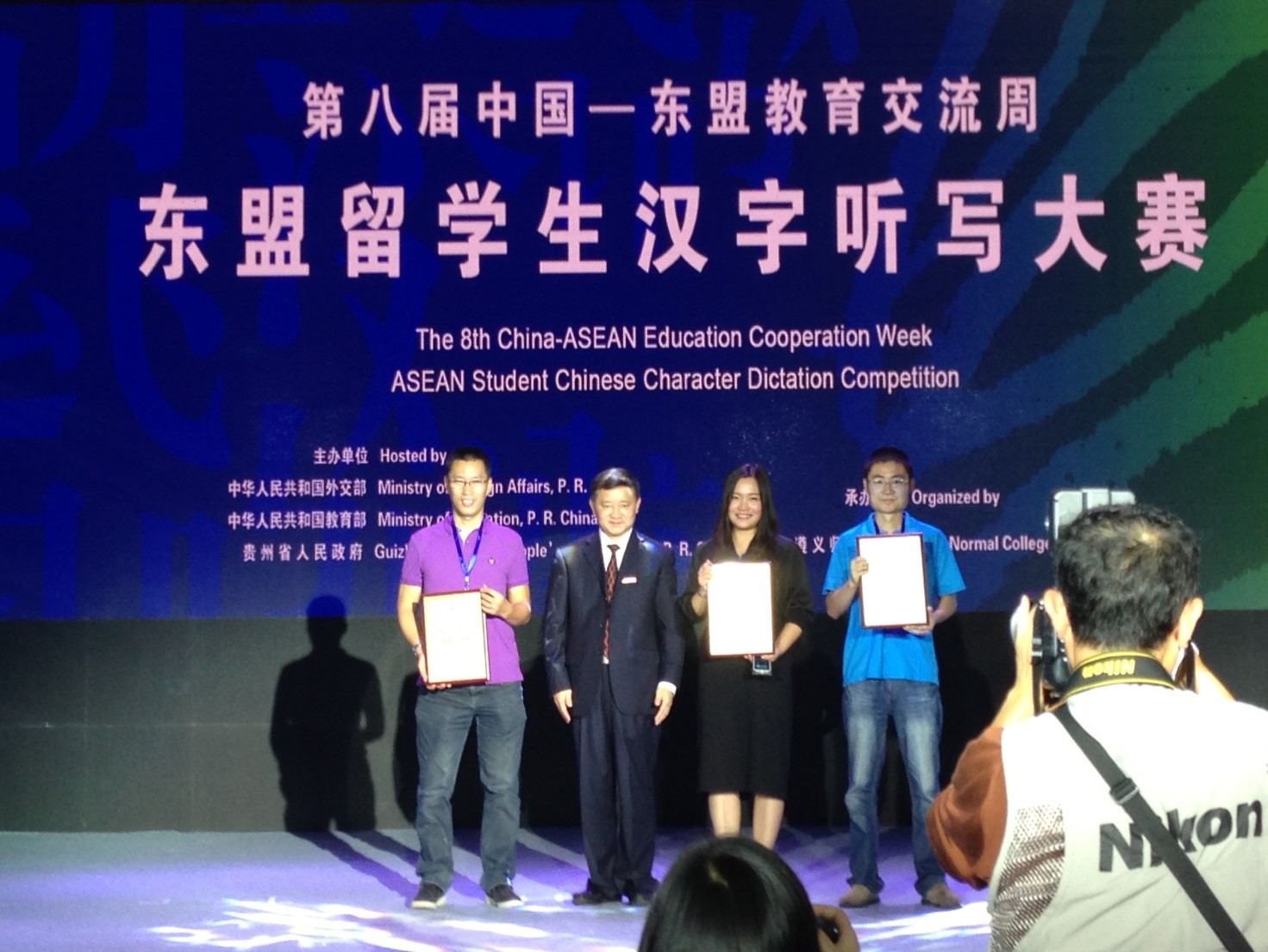 9月23日上午,我校五名留学生李嘉燕(越南)、罗俊勇(泰国)、许意侬(泰国)、谢佳佳(泰国)、李萱花(印度尼西亚)参加了在贵州遵义师范学院举行的第八届中国-东盟教育交流周之东盟留学生汉字听写大赛,并获得佳绩。来自国内十所高校的东盟各国留学生同台竞技,共同感受源远流长的中国文化。