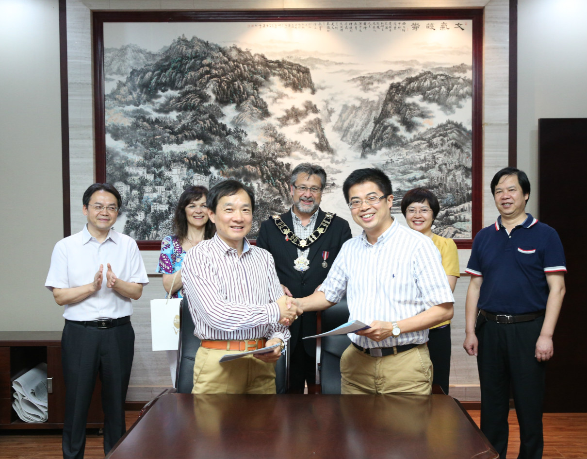 6月6日,加拿大不列颠哥伦比亚(BC)省鲍威尔市(City of Powell River)市长Dave Formosa先生,温哥华岛大学(Vancouver Island University)鲍威尔校区校长Micki McCartney女士,加拿大BC省SBS(Sino Bright School Board)海外学校局主席欧阳全先生一行莅临必赢776net访问。张发钧院长接待了加拿大客人,并代表学院与SBS海外学校局主席欧阳全先生签署了合作谅解备忘录,双方拟在互设办公室,温哥华岛大学学生来校游学等项目上开展合作。