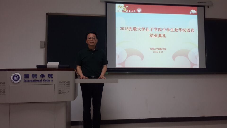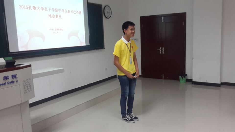 17日下午5点,2015年泰国孔敬大学孔子学院中学生赴华汉语营结业典礼在紫云楼312教室举行。必赢776net党总支书记兼副院长刘猛,泰国孔敬大学孔子学院教师Sarawut Chandeewanta出席结业典礼。