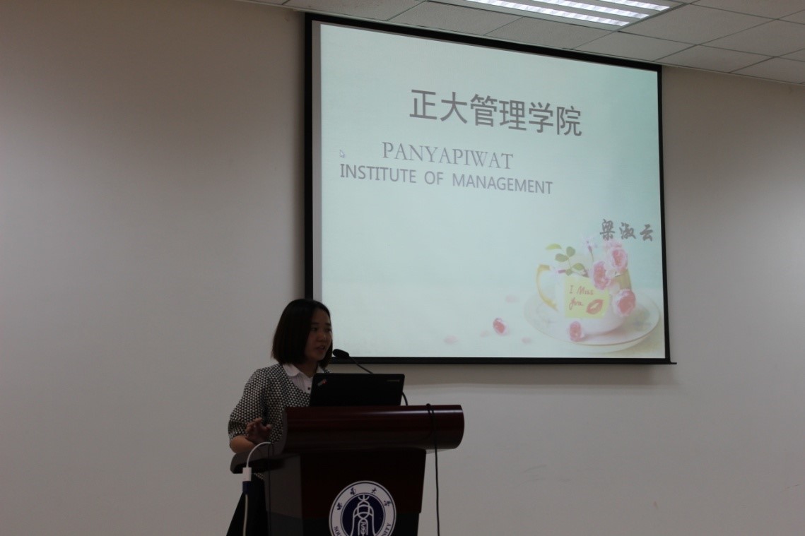 我院2013级汉语国际教育硕士分别在泰国孔敬大学孔子学院、泰国正大管理学院、泰国国王科技大学、泰国皇家理工大学、韩国仁济大学、韩国蔚山大学等6个海外实习点进行了为期或半年或10个月的实习。本次实习总结会以2013级同学的实习短片开场,短片既温馨又感人,大家一起重新温故了在海外教学和生活的点点滴滴。随后,实习生代表们用生动幽默的语言、图文并茂的PPT,分别就他们所在的实习点的实习情况做了详细的汇报和总结,并对即将赴海外实习的2014级同学进行了鼓励和祝福。