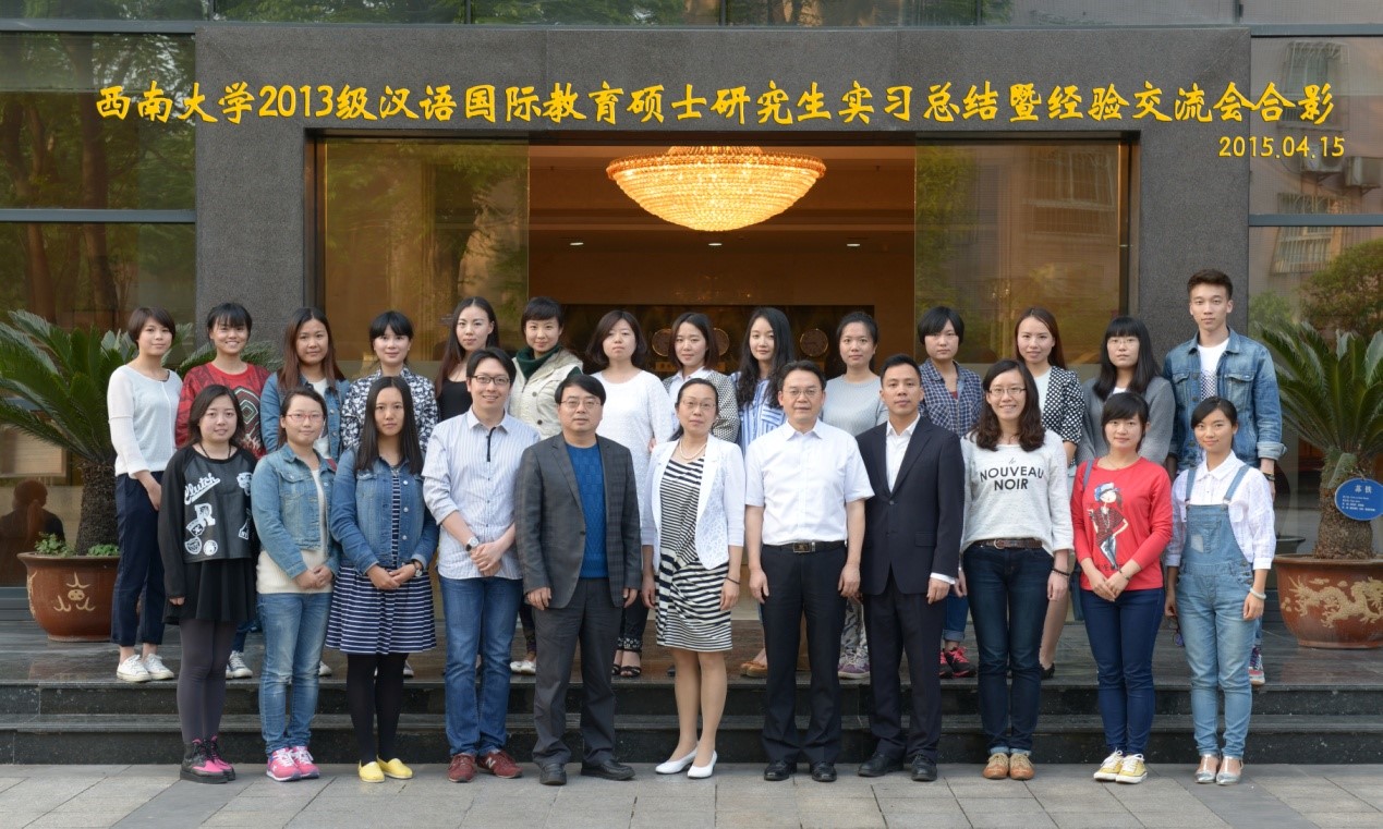 4月15日下午,2013级汉语国际教育硕士实习总结暨经验交流会在紫云楼317教室隆重举行。研究生院专业学位管理办公室主任黄漓红、必赢776net院长张发钧、党总支书记兼副院长刘猛、副院长张家政、教师代表以及2013级和2014级汉语国际教育硕士全体同学出席本次会议。