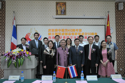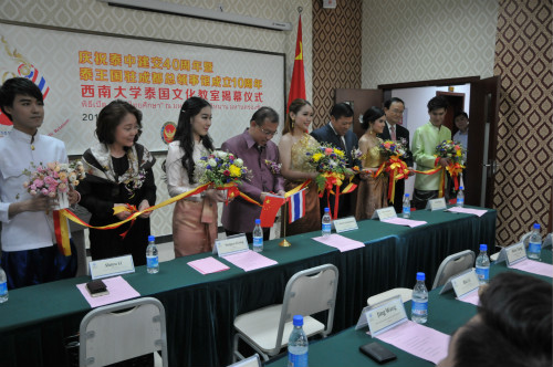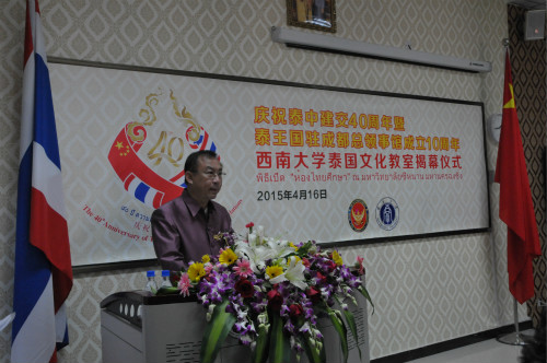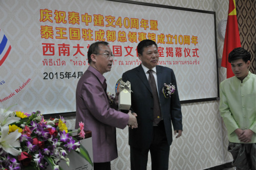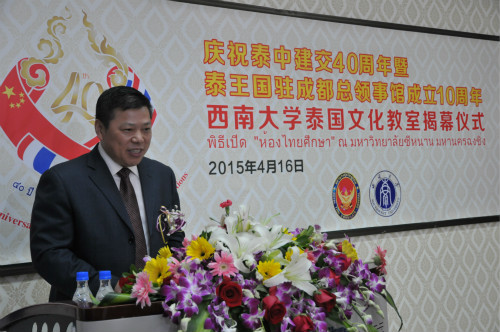 郭梅特先生在仪式上致辞,他说,今年是泰国诗琳通公主60华诞,中泰建交40周年,泰国驻成都总领馆成立10周年,又是必赢776net泰国文化教室揭幕,可谓四喜临门!希望泰国文化教室建设成为中泰学生相互学习、友好交流的重要平台。