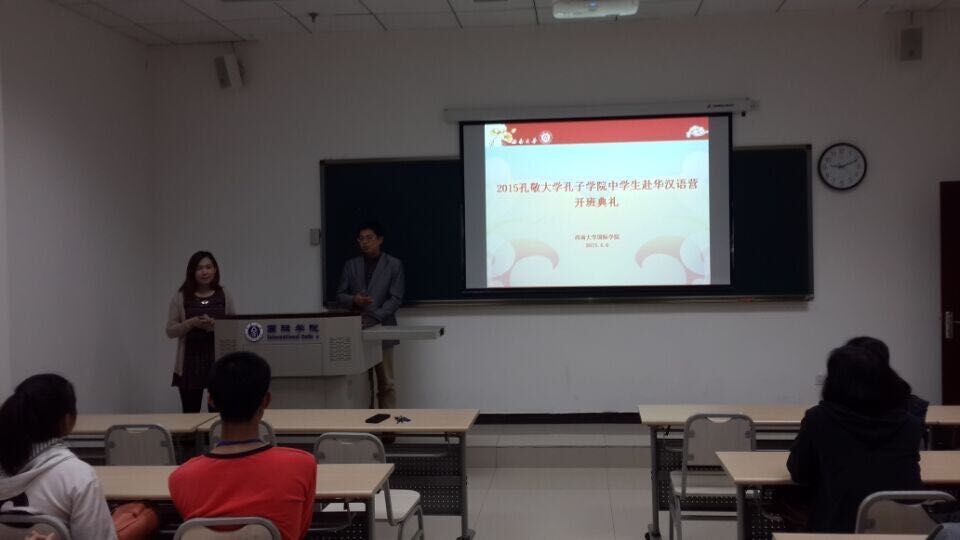 4月6日上午9时,泰国孔敬大学孔子学院中学生赴华汉语营开班典礼在必赢776net312教室举行。必赢776net院长张发钧出席了开班典礼。