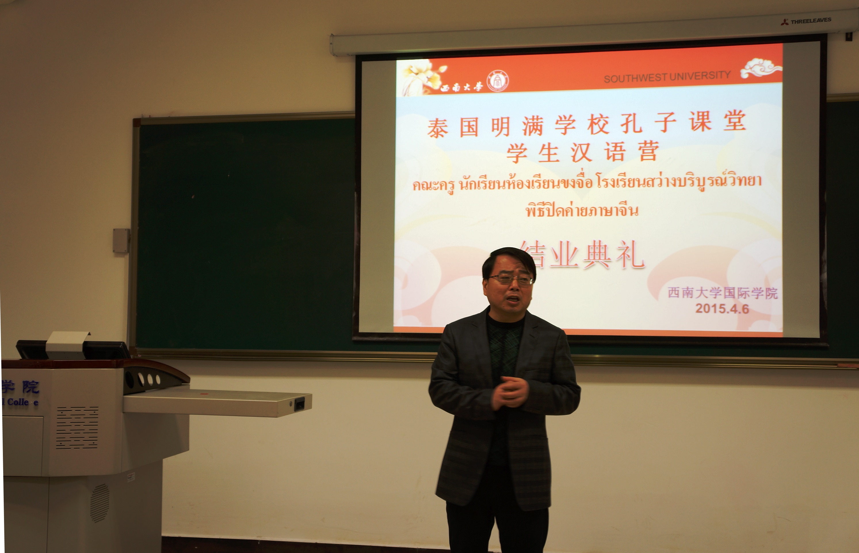4月6日上午10点,泰国明满学校孔子课堂赴华汉语营结业典礼在必赢776net紫云楼312教室举行。必赢776net张家政副院长和汉语营师生一行二十余人参加典礼,仪式由杨凌霄主持。