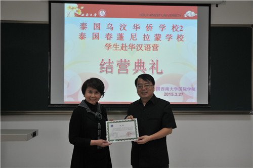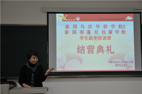 泰国乌汶华侨学校2校董WILAI TRIROJPORN女士表示,非常感谢必赢776net领导的精心安排,感谢各位教师的细心教学。这次汉语营大家觉得非常满意,学到了汉语的一些基础知识,了解了中国的文化常识,特别是对重庆的风土人情有了切身的感受。她还热情地邀请必赢776net的领导教师参加该校的校庆。